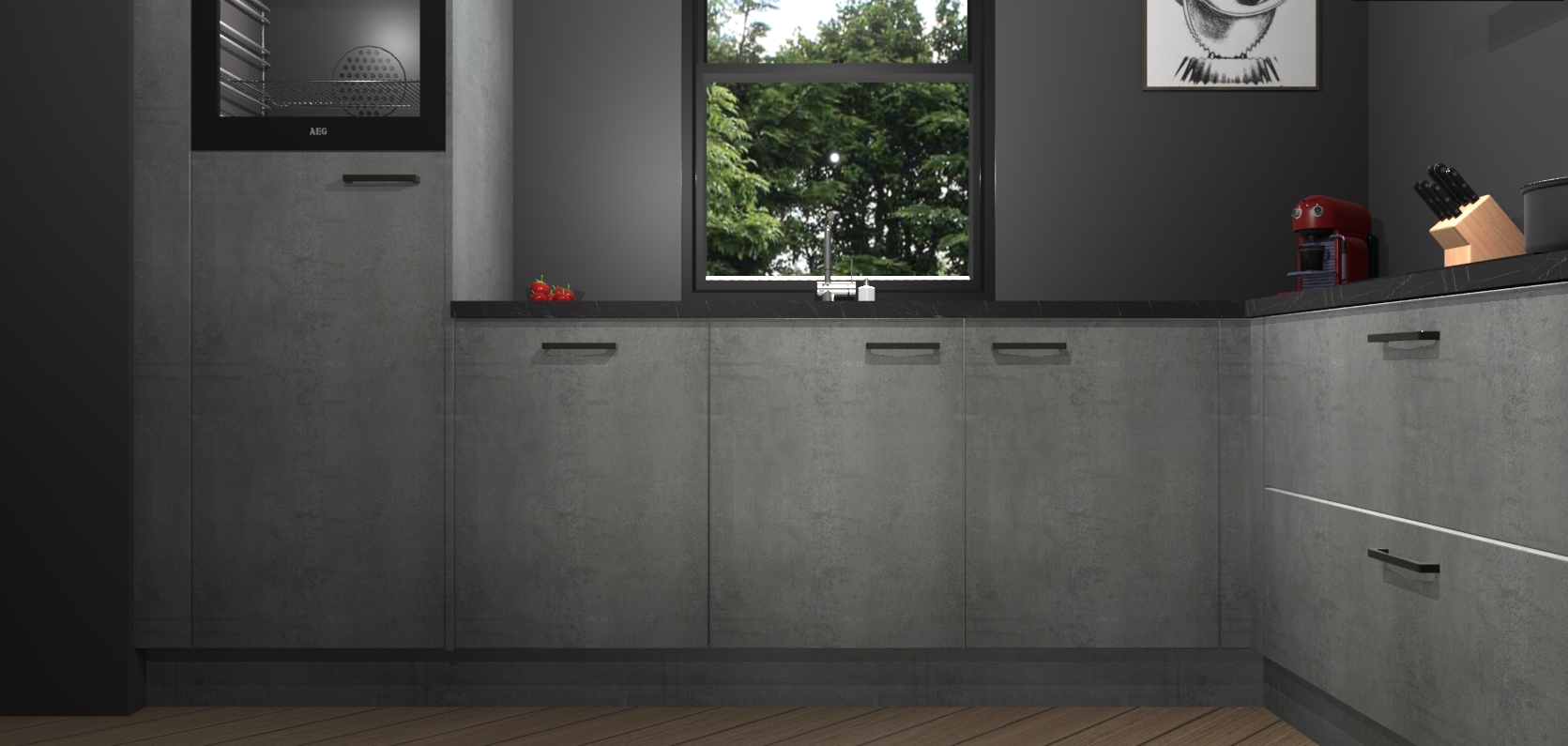 Welkom bij de Beton parelgrijs keuken Lublin. Deze prachtige keuken zal de komende jaren het middelpunt van de belangstelling in uw huis zijn. Uitgerust met vijf inbouwapparaten komt u nooit kookgereedschap tekort. Bovendien geeft de warme houtlook elke ruimte een uitnodigende en tijdloze uitstraling.