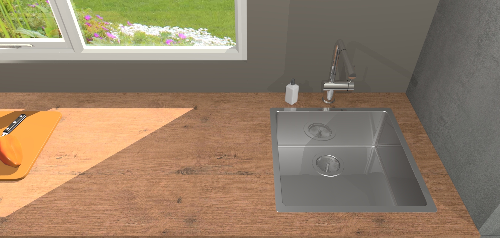- De spoelbak is nog niet in gevreesd. Dit dient tijdens het werk gedaan te worden