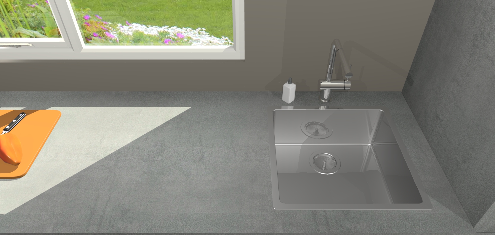 - De spoelbak is nog niet in gevreesd. Dit dient tijdens het werk gedaan te worden