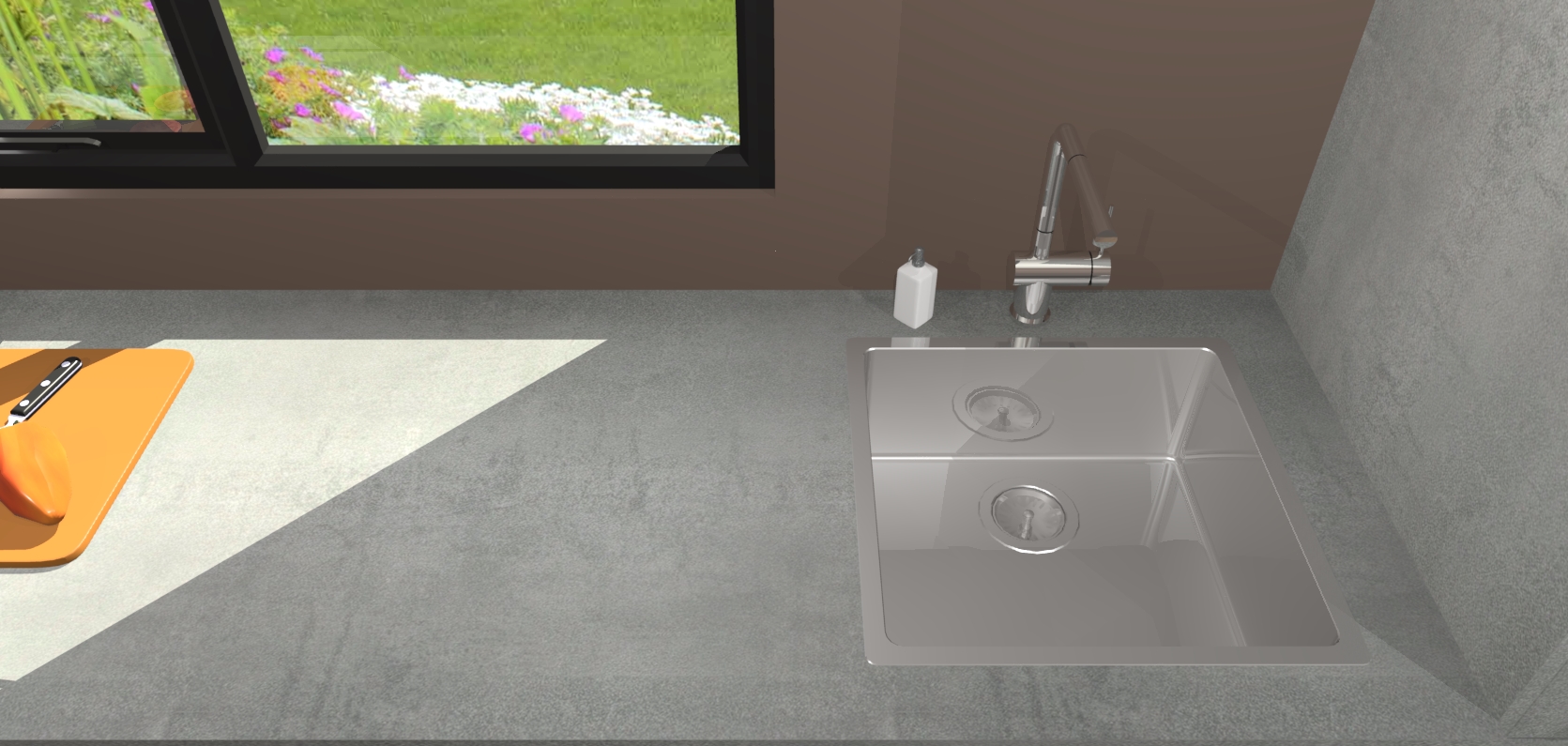 - De spoelbak is nog niet in gevreesd. Dit dient tijdens het werk gedaan te worden