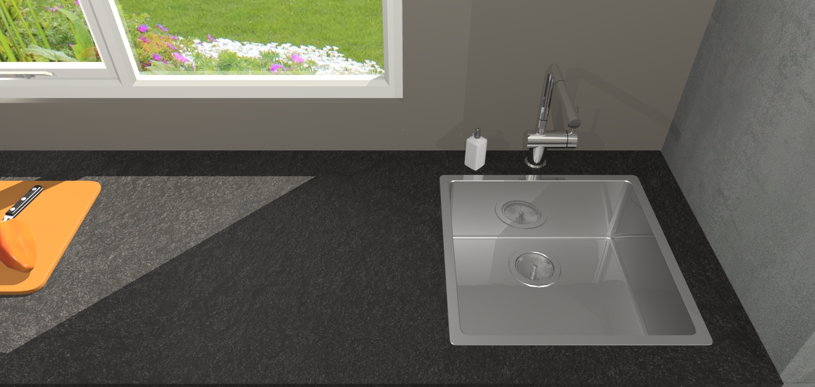 - De spoelbak is nog niet in gevreesd. Dit dient tijdens het werk gedaan te worden