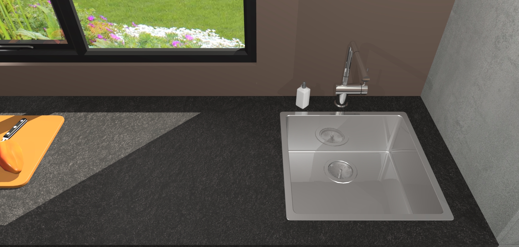 - De spoelbak is nog niet in gevreesd. Dit dient tijdens het werk gedaan te worden