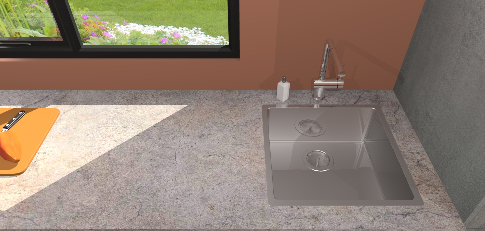 - De spoelbak is nog niet in gevreesd. Dit dient tijdens het werk gedaan te worden