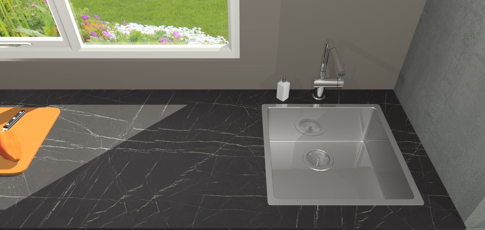 - De spoelbak is nog niet in gevreesd. Dit dient tijdens het werk gedaan te worden