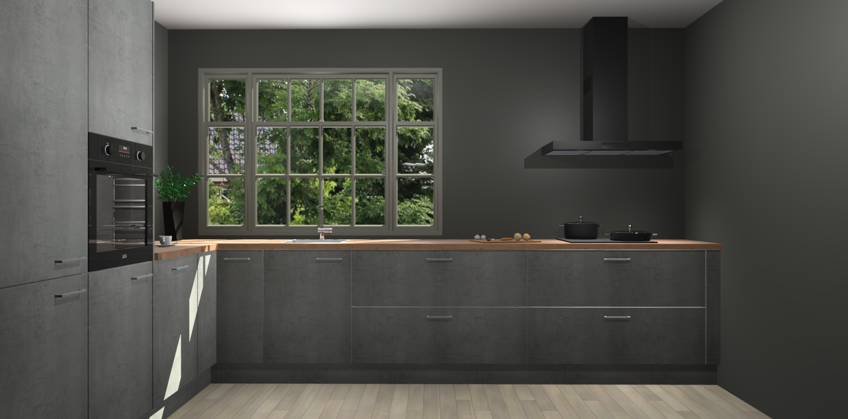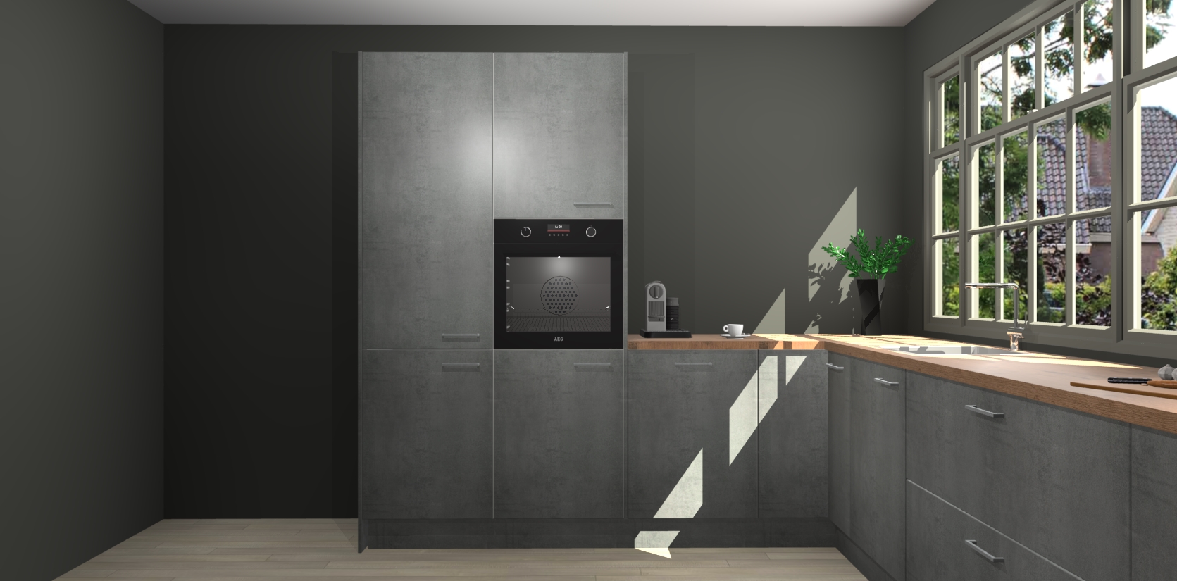 Heeft u nog apparatuur nodig? Geen probleem: de Beton Parelgrijs keuken Malaga bevat vijf ingebouwde apparaten - een oven, inductiekookplaat, afzuigkap, vaatwasser en koelkast - die gemakkelijk kunnen worden bijgewerkt naar AEG na bestelling. En als dat nog niet genoeg is; onze kasten worden pre-geassembleerd geleverd en zijn verkrijgbaar tegen een vastgeroeste lage prijs! U hoeft nooit meer te zoeken naar goede kwaliteit en service want onze producten hebben echt Duitse kwaliteit.