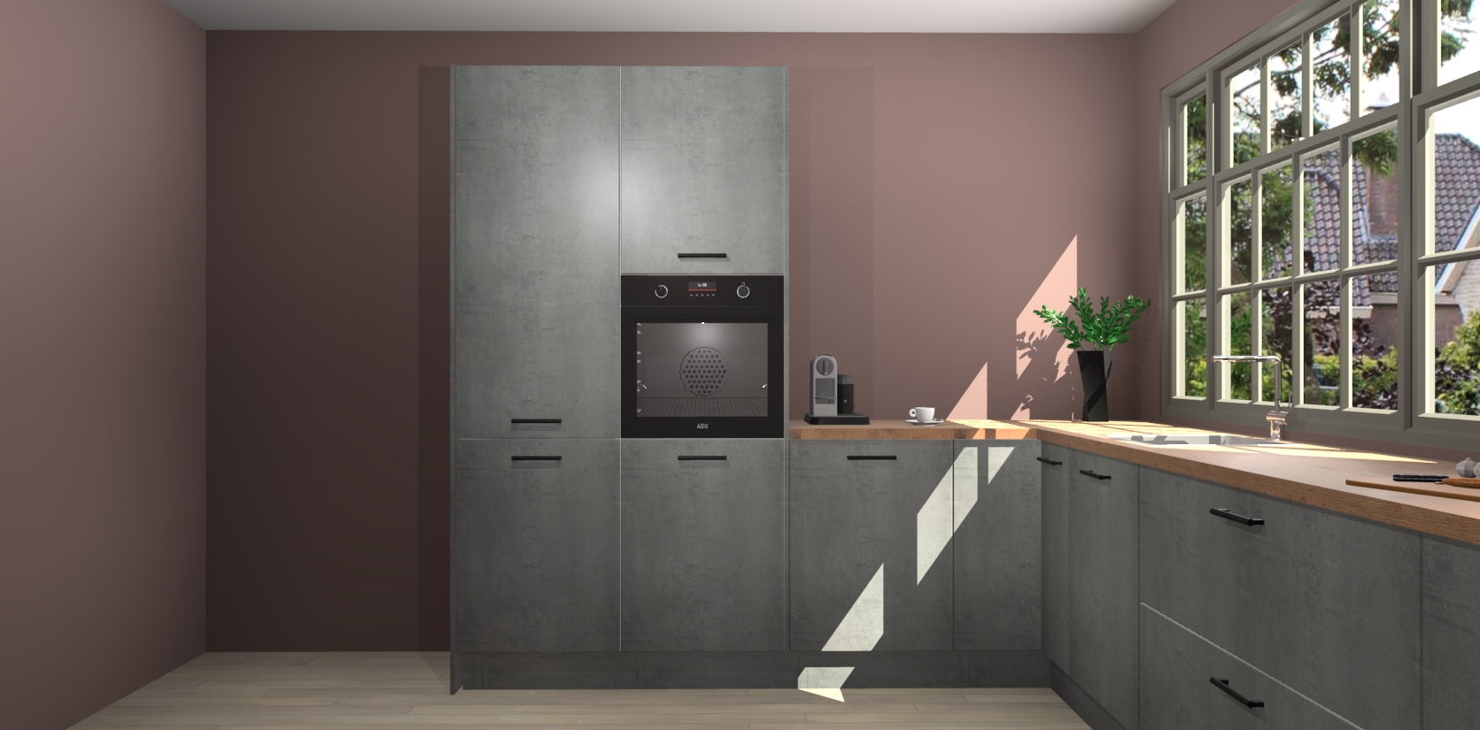 Kom dichtbij de perfecte keuken van uw dromen met de Beton Parelgrijs keuken Malaga. Met een prachtige houtlook en eigentijds ontwerp, straalt deze keuken warmte en sfeer uit. Of u nu liefhebber bent van traditionele of moderne stijlen, er is genoeg ruimte om aan al uw behoeften te voldoen.
