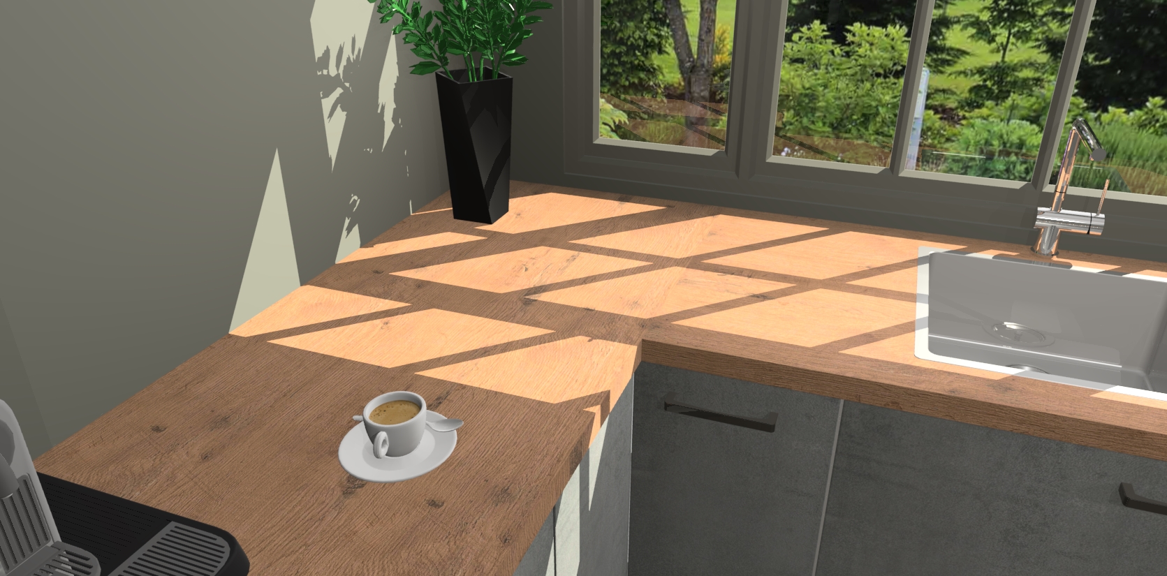 • Bij een hoekwerkblad zijn de hoeken in gevreesd en op maat gemaakt