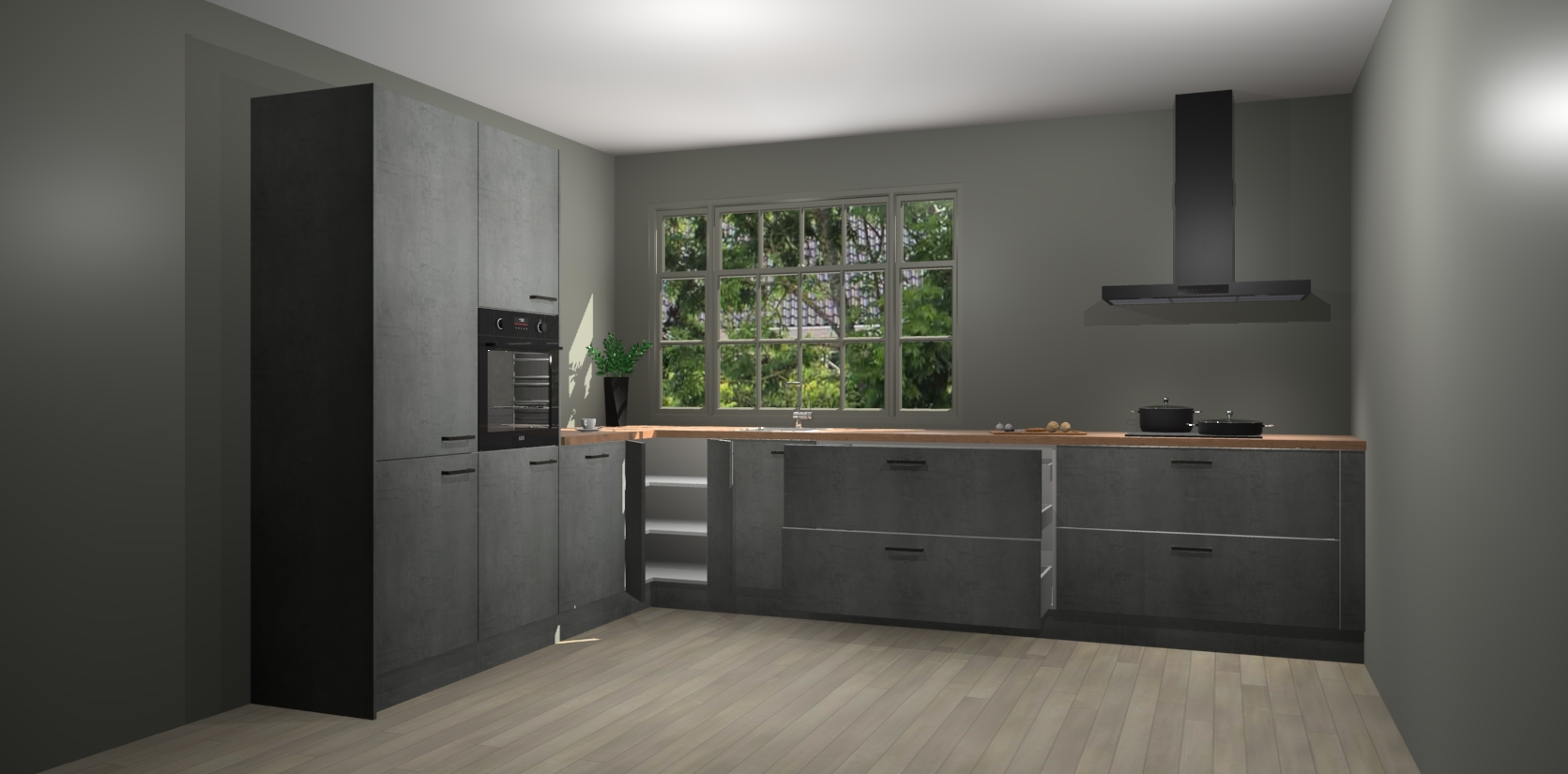 Kom dichtbij de perfecte keuken van uw dromen met de Beton Parelgrijs keuken Malaga. Met een prachtige houtlook en eigentijds ontwerp, straalt deze keuken warmte en sfeer uit. Of u nu liefhebber bent van traditionele of moderne stijlen, er is genoeg ruimte om aan al uw behoeften te voldoen.