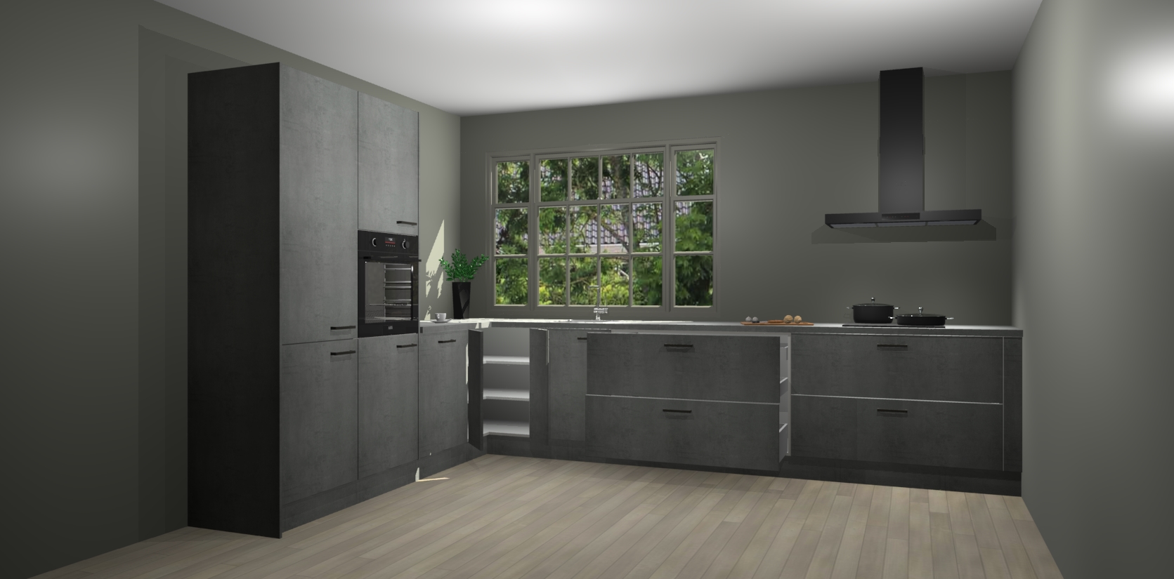 Kom dichtbij de perfecte keuken van uw dromen met de Beton Parelgrijs keuken Malaga. Met een prachtige houtlook en eigentijds ontwerp, straalt deze keuken warmte en sfeer uit. Of u nu liefhebber bent van traditionele of moderne stijlen, er is genoeg ruimte om aan al uw behoeften te voldoen.