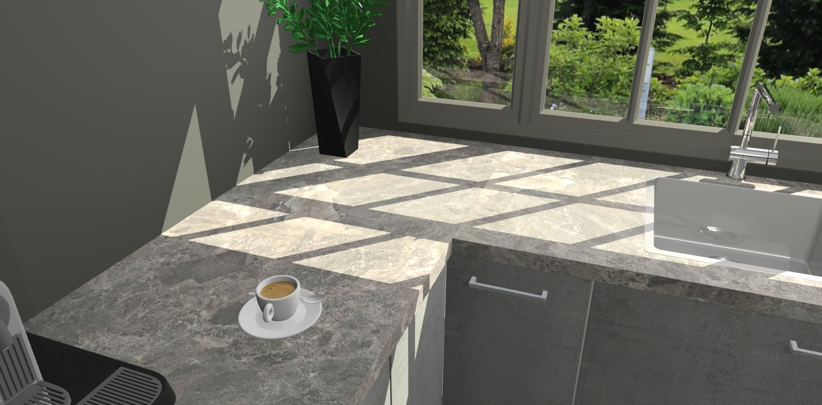• Bij een hoekwerkblad zijn de hoeken in gevreesd en op maat gemaakt