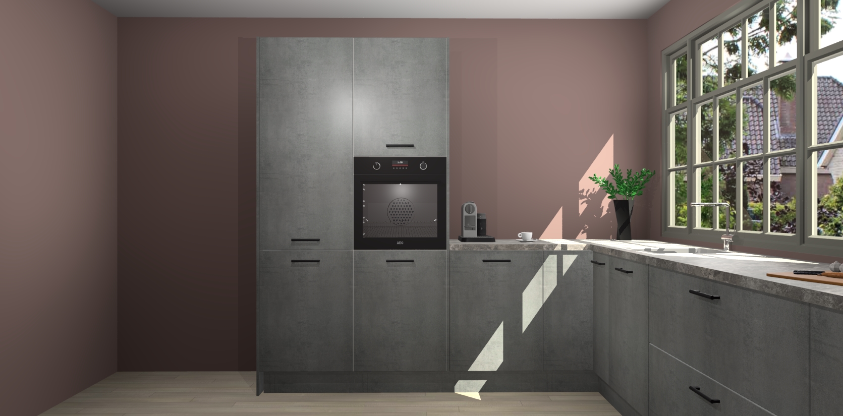 Heeft u nog apparatuur nodig? Geen probleem: de Beton Parelgrijs keuken Malaga bevat vijf ingebouwde apparaten - een oven, inductiekookplaat, afzuigkap, vaatwasser en koelkast - die gemakkelijk kunnen worden bijgewerkt naar AEG na bestelling. En als dat nog niet genoeg is; onze kasten worden pre-geassembleerd geleverd en zijn verkrijgbaar tegen een vastgeroeste lage prijs! U hoeft nooit meer te zoeken naar goede kwaliteit en service want onze producten hebben echt Duitse kwaliteit.