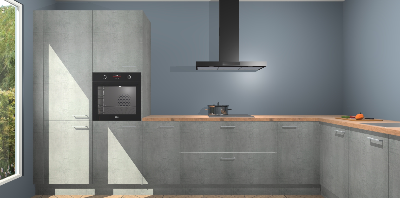 Met een modern, tijdloos design en ruime opslagruimte, zult u zich in no-time thuis voelen in uw nieuwe keuken. Uw leven wordt eenvoudiger met de soft-close deuren die voor het ultieme stille comfort zorgen - geen geluid dat u stoort terwijl u kookt. Ook is de keuken voorzien van 5 ingebouwde apparaten: een oven, inductie kookplaat, afzuigkap, vaatwasser en koelkast. Deze kunnen gemakkelijk na bestelling worden bijgewerkt naar AEG - waardoor uw luxe ervaring compleet is.