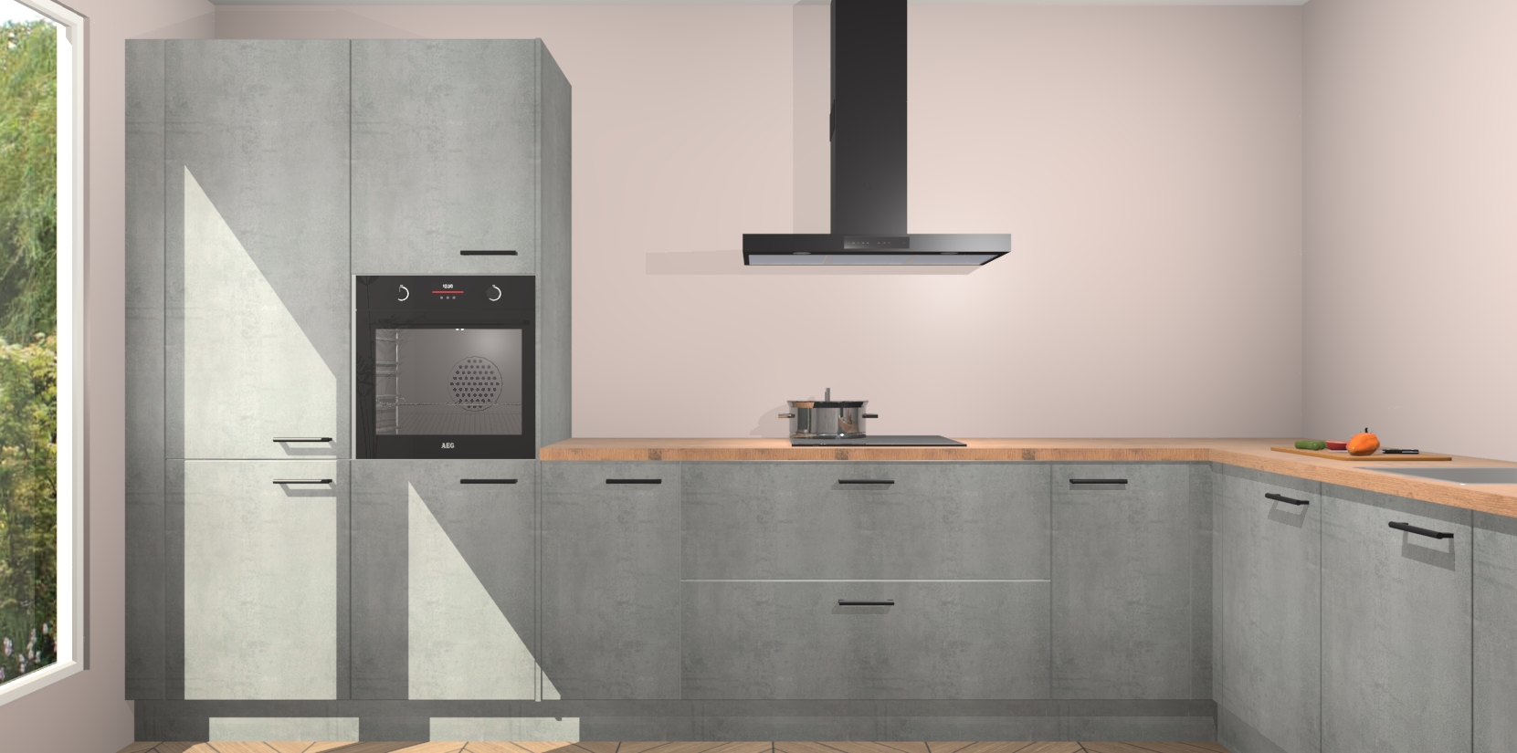 Met een modern, tijdloos design en ruime opslagruimte, zult u zich in no-time thuis voelen in uw nieuwe keuken. Uw leven wordt eenvoudiger met de soft-close deuren die voor het ultieme stille comfort zorgen - geen geluid dat u stoort terwijl u kookt. Ook is de keuken voorzien van 5 ingebouwde apparaten: een oven, inductie kookplaat, afzuigkap, vaatwasser en koelkast. Deze kunnen gemakkelijk na bestelling worden bijgewerkt naar AEG - waardoor uw luxe ervaring compleet is.