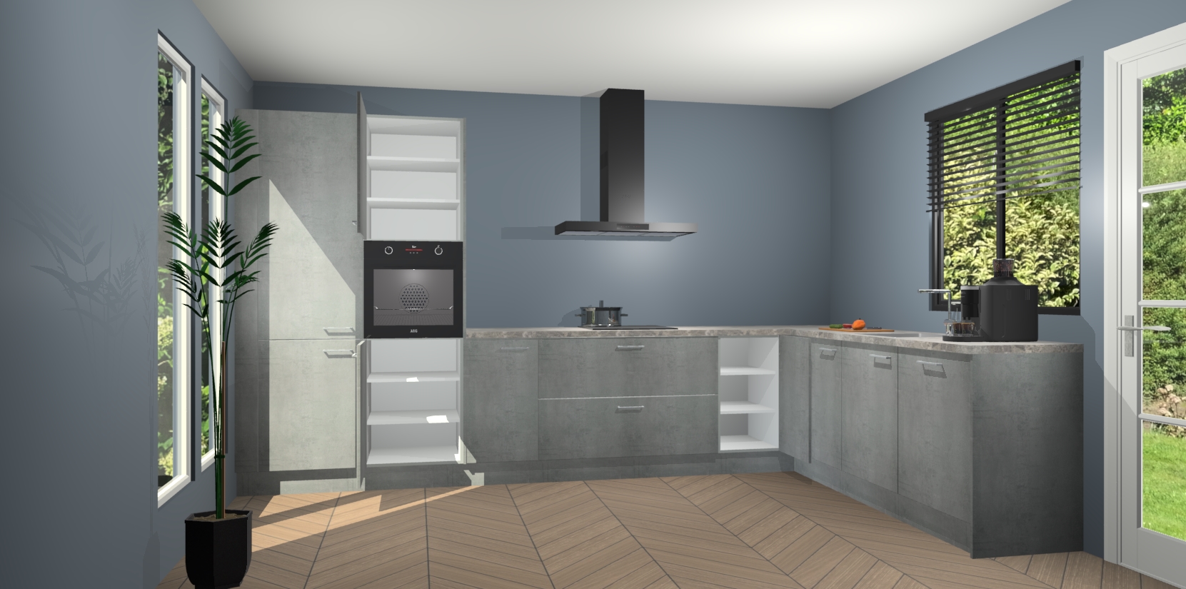 Met een modern, tijdloos design en ruime opslagruimte, zult u zich in no-time thuis voelen in uw nieuwe keuken. Uw leven wordt eenvoudiger met de soft-close deuren die voor het ultieme stille comfort zorgen - geen geluid dat u stoort terwijl u kookt. Ook is de keuken voorzien van 5 ingebouwde apparaten: een oven, inductie kookplaat, afzuigkap, vaatwasser en koelkast. Deze kunnen gemakkelijk na bestelling worden bijgewerkt naar AEG - waardoor uw luxe ervaring compleet is.