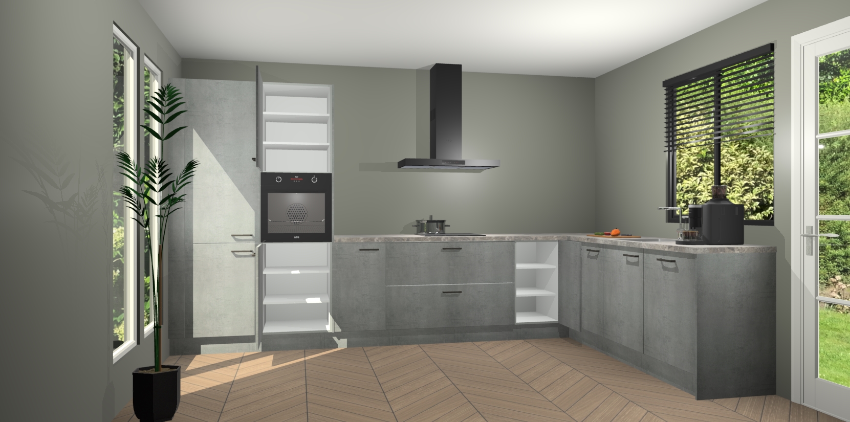 Met een modern, tijdloos design en ruime opslagruimte, zult u zich in no-time thuis voelen in uw nieuwe keuken. Uw leven wordt eenvoudiger met de soft-close deuren die voor het ultieme stille comfort zorgen - geen geluid dat u stoort terwijl u kookt. Ook is de keuken voorzien van 5 ingebouwde apparaten: een oven, inductie kookplaat, afzuigkap, vaatwasser en koelkast. Deze kunnen gemakkelijk na bestelling worden bijgewerkt naar AEG - waardoor uw luxe ervaring compleet is.