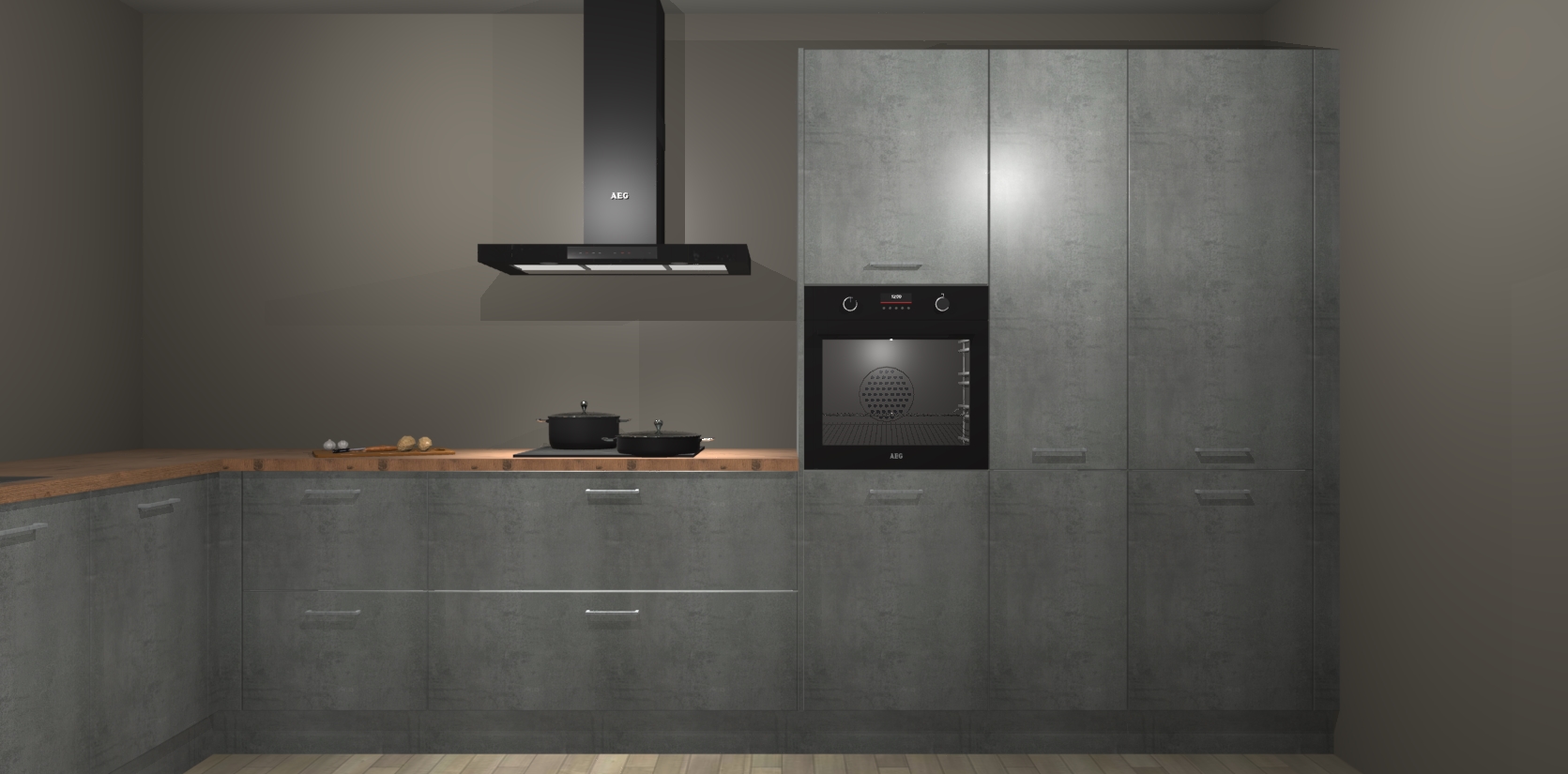 Welkom bij de beton parelgrijs keuken Nuuk. Deze prachtige keuken zal de komende jaren het middelpunt van de belangstelling in uw huis zijn. Uitgerust met vijf inbouwapparaten komt u nooit kookgereedschap tekort.