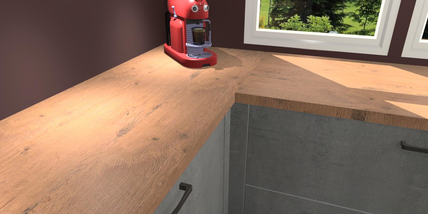 - Bij een hoekwerkblad zijn de hoeken in gevreesd en op maat gemaakt