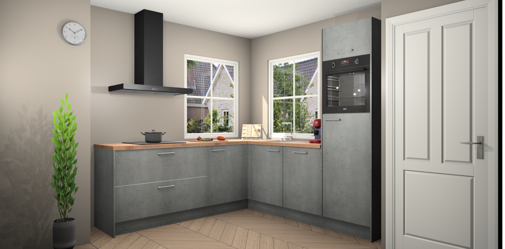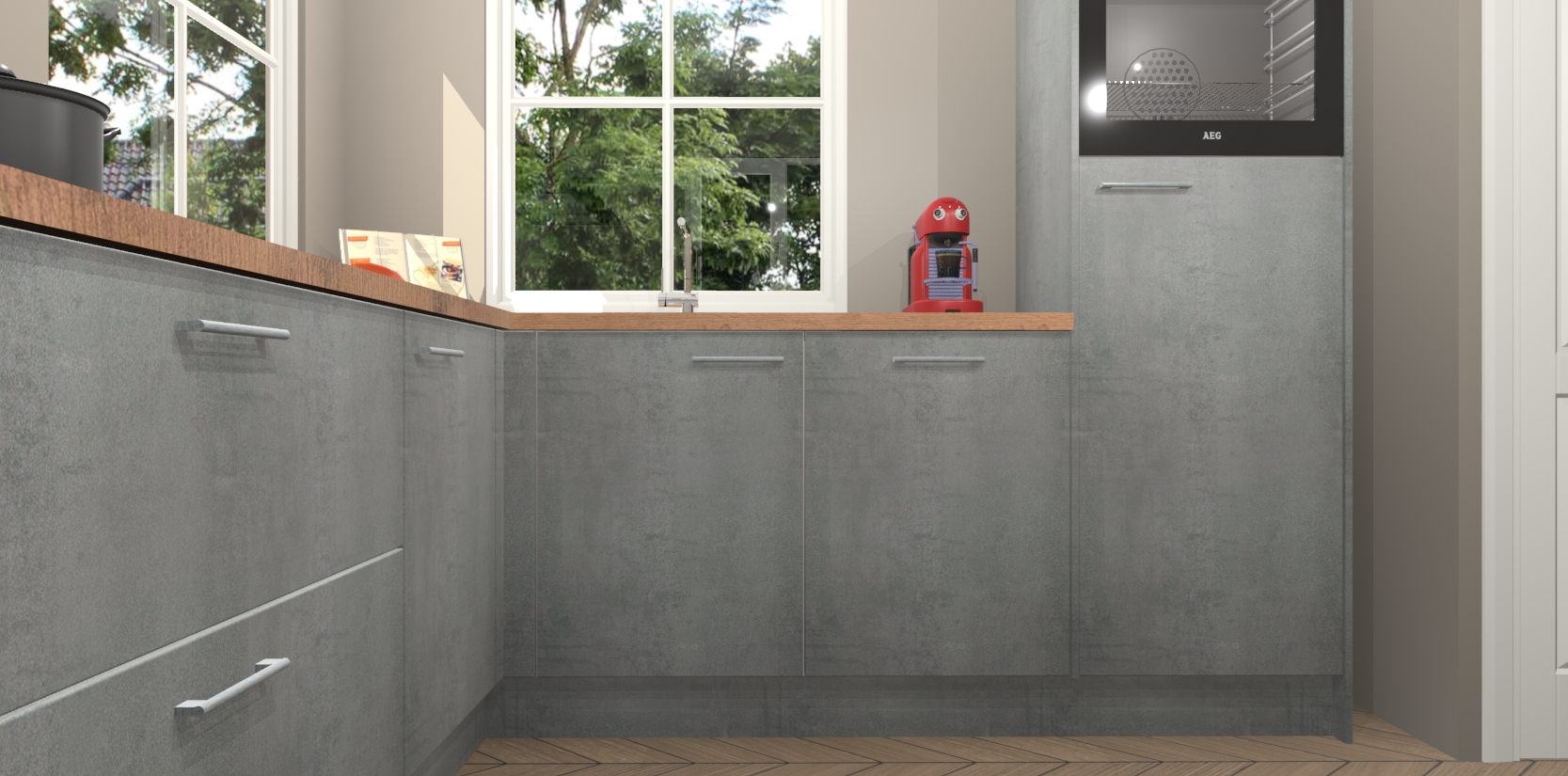 De Beton Parelgrijs keuken Pai bevat vijf essentiële inbouwapparaten - een oven, inductiekookplaat, afzuigkap, vaatwasser en koelkast - zodat u er na levering meteen in kunt. Voor de slimme kopers die weten dat apparaten vaak het verschil kunnen maken tussen functioneel en luxueus, bieden we eenvoudige upgradeopties naar AEG, van oven naar combimagnetron na bestelling of naar een kookplaat met geïntrigeerde afzuiging. En met onze vaste lage prijs en snelle levering binnen zeven weken vanaf de orderbevestiging hoeft u zich geen zorgen te maken over verborgen kosten of lange levertijden die uw droomkeuken kunnen vertragen.