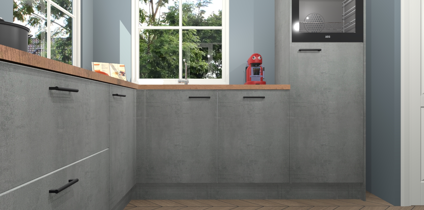 De Beton Parelgrijs keuken Pai bevat vijf essentiële inbouwapparaten - een oven, inductiekookplaat, afzuigkap, vaatwasser en koelkast - zodat u er na levering meteen in kunt. Voor de slimme kopers die weten dat apparaten vaak het verschil kunnen maken tussen functioneel en luxueus, bieden we eenvoudige upgradeopties naar AEG, van oven naar combimagnetron na bestelling of naar een kookplaat met geïntrigeerde afzuiging. En met onze vaste lage prijs en snelle levering binnen zeven weken vanaf de orderbevestiging hoeft u zich geen zorgen te maken over verborgen kosten of lange levertijden die uw droomkeuken kunnen vertragen.