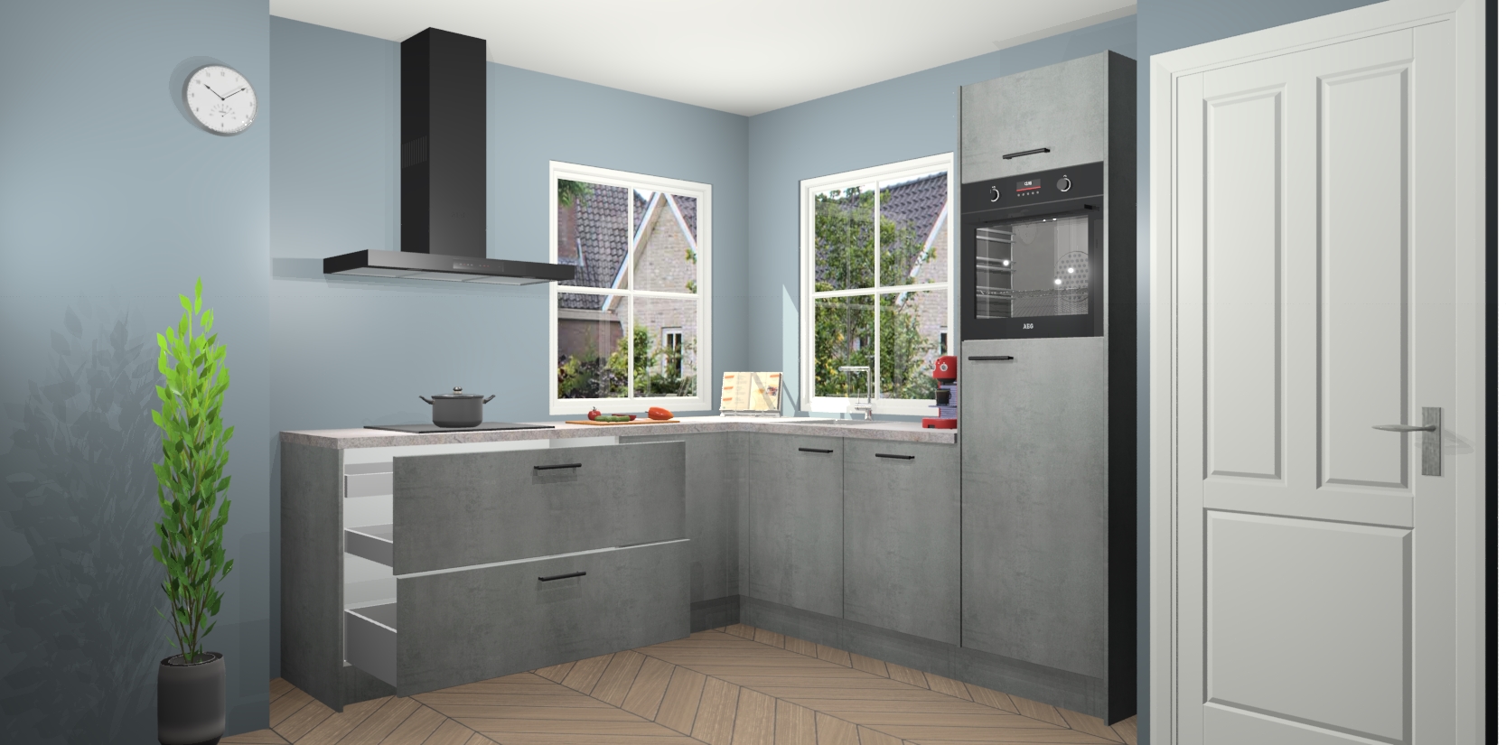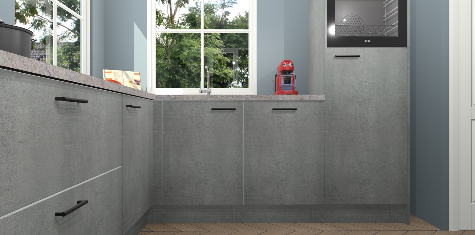 De Beton Parelgrijs keuken Pai bevat vijf essentiële inbouwapparaten - een oven, inductiekookplaat, afzuigkap, vaatwasser en koelkast - zodat u er na levering meteen in kunt. Voor de slimme kopers die weten dat apparaten vaak het verschil kunnen maken tussen functioneel en luxueus, bieden we eenvoudige upgradeopties naar AEG, van oven naar combimagnetron na bestelling of naar een kookplaat met geïntrigeerde afzuiging. En met onze vaste lage prijs en snelle levering binnen zeven weken vanaf de orderbevestiging hoeft u zich geen zorgen te maken over verborgen kosten of lange levertijden die uw droomkeuken kunnen vertragen.