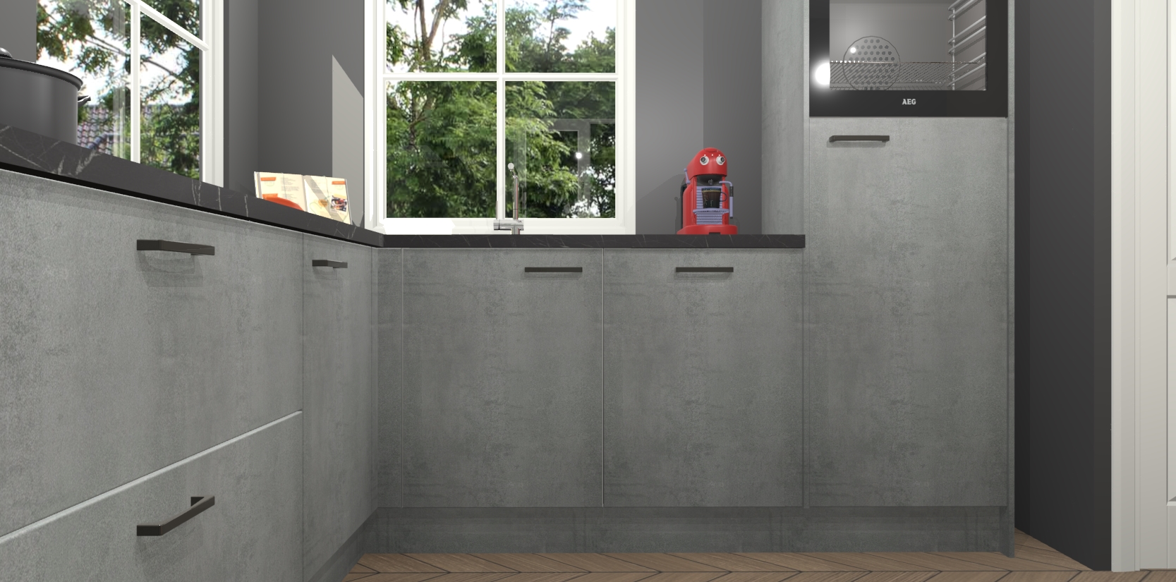 De Beton Parelgrijs keuken Pai bevat vijf essentiële inbouwapparaten - een oven, inductiekookplaat, afzuigkap, vaatwasser en koelkast - zodat u er na levering meteen in kunt. Voor de slimme kopers die weten dat apparaten vaak het verschil kunnen maken tussen functioneel en luxueus, bieden we eenvoudige upgradeopties naar AEG, van oven naar combimagnetron na bestelling of naar een kookplaat met geïntrigeerde afzuiging. En met onze vaste lage prijs en snelle levering binnen zeven weken vanaf de orderbevestiging hoeft u zich geen zorgen te maken over verborgen kosten of lange levertijden die uw droomkeuken kunnen vertragen.