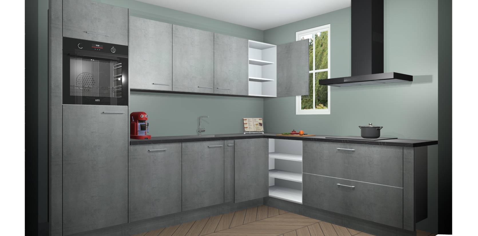 Inclusief plinten, stelpoten en werkblad