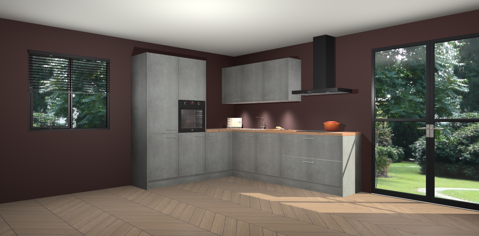 Maak kennis met de beton parelgrijs keuken Parla - de perfecte aanvulling voor uw moderne keuken! Ervaar tijdloos design, elegantie en een chique uitstraling met onze zwarte handgrepen, soft-close deuren en veel opbergruimte. Dit alles wordt aangeboden tegen een vaste lage prijs voor ongeëvenaarde Duitse keukenkwaliteit!
