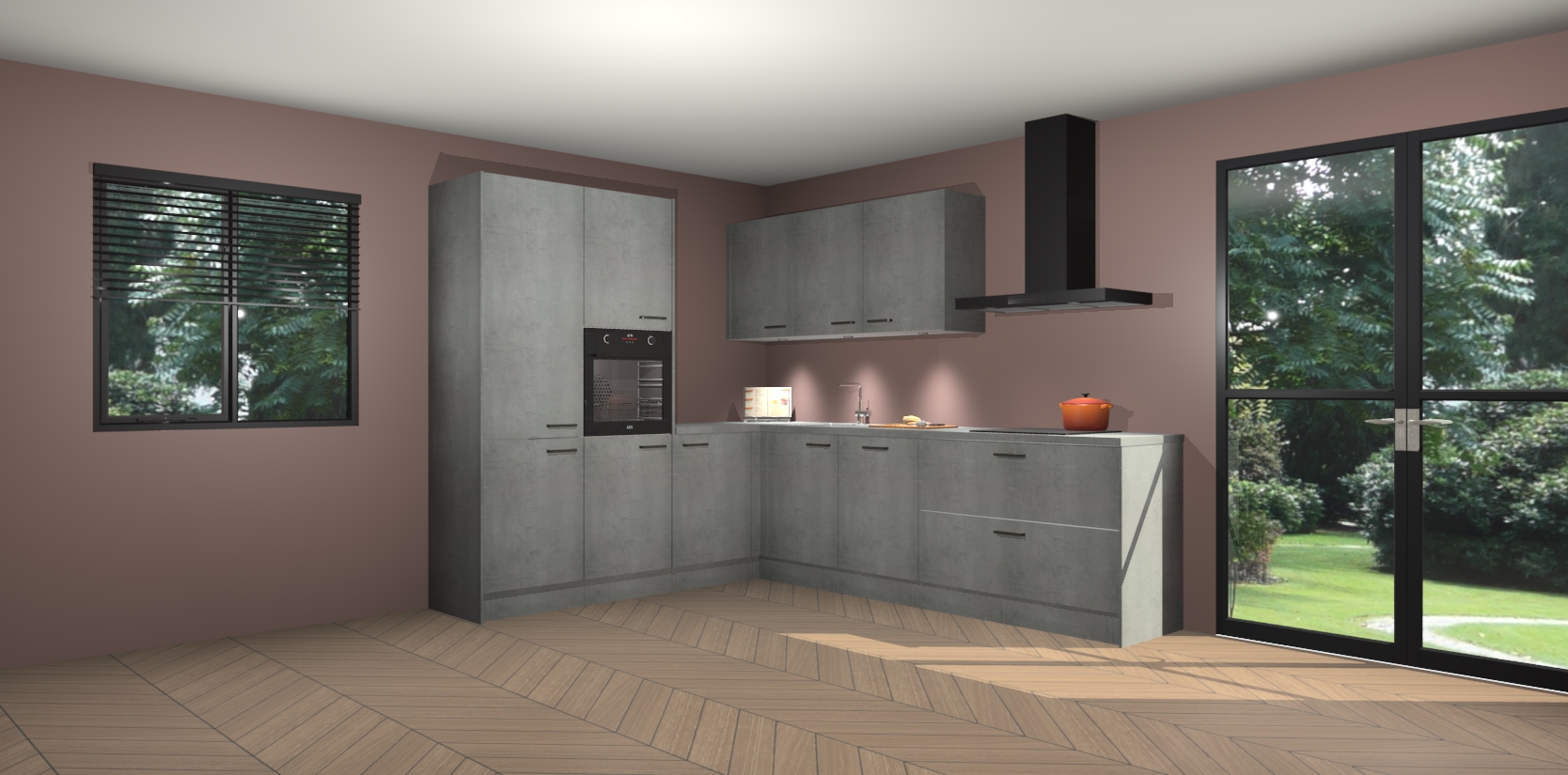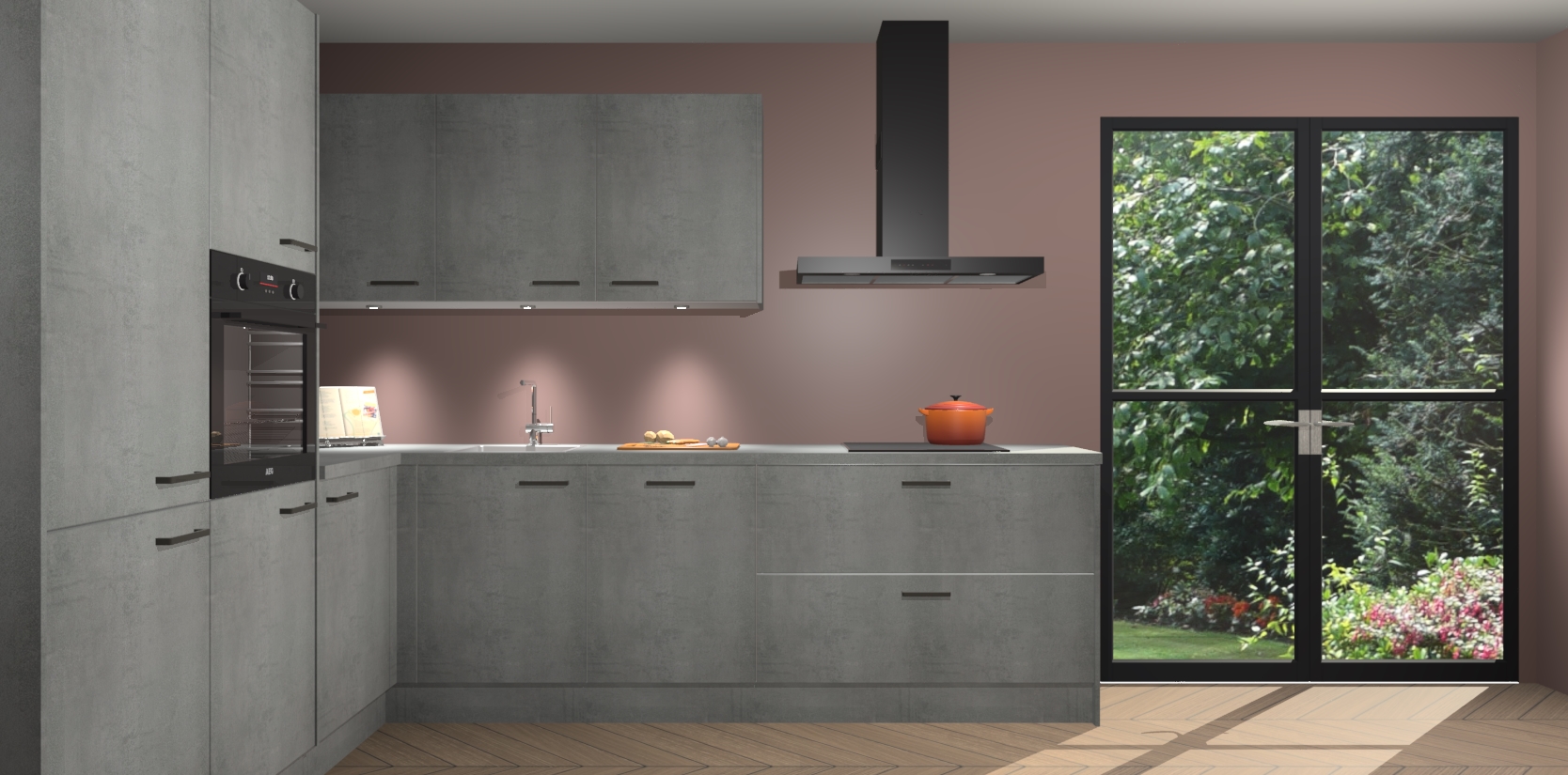 Maak kennis met de beton parelgrijs keuken Parla - de perfecte aanvulling voor uw moderne keuken! Ervaar tijdloos design, elegantie en een chique uitstraling met onze zwarte handgrepen, soft-close deuren en veel opbergruimte. Dit alles wordt aangeboden tegen een vaste lage prijs voor ongeëvenaarde Duitse keukenkwaliteit!