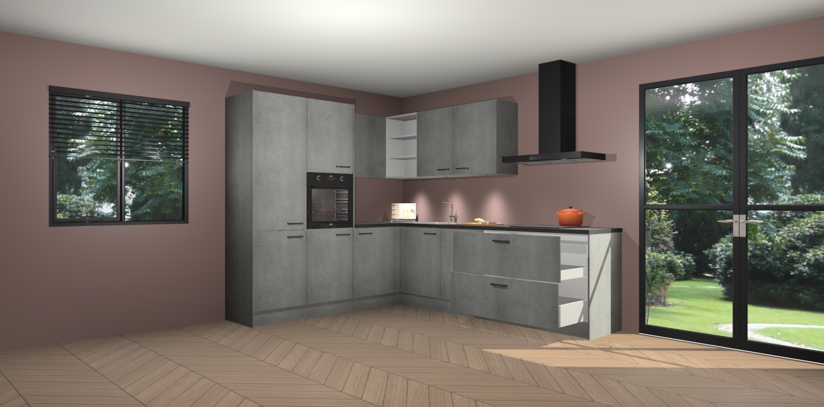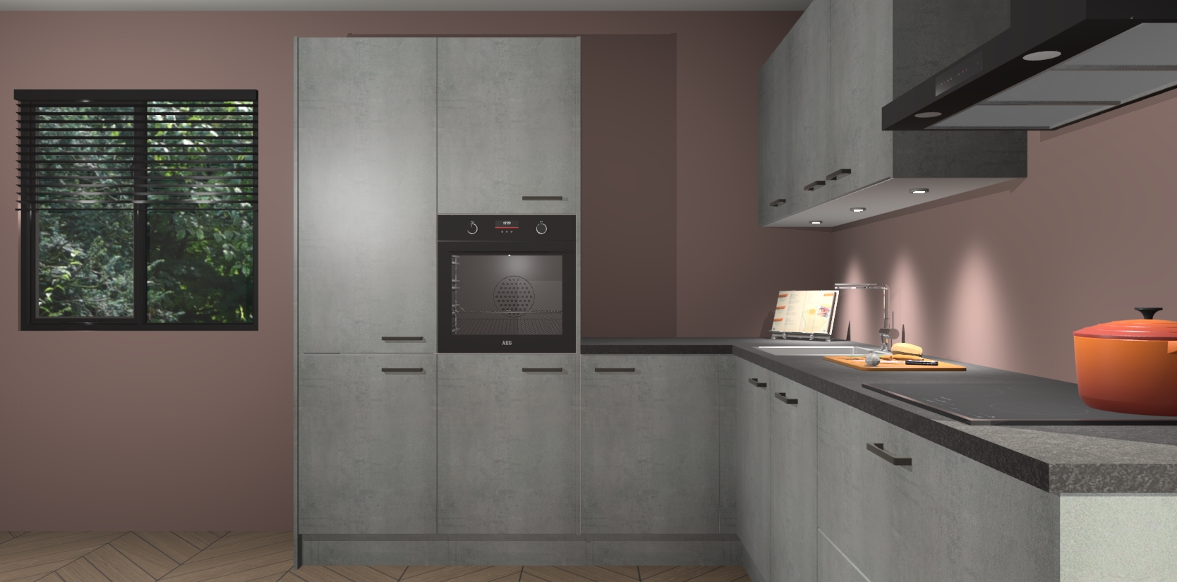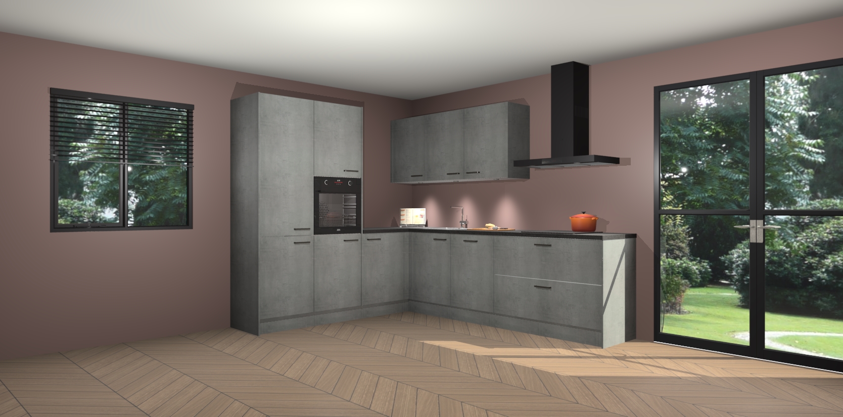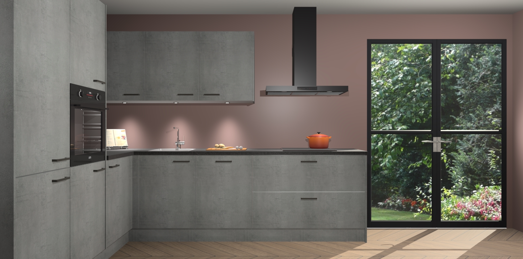 Maak kennis met de beton parelgrijs keuken Parla - de perfecte aanvulling voor uw moderne keuken! Ervaar tijdloos design, elegantie en een chique uitstraling met onze zwarte handgrepen, soft-close deuren en veel opbergruimte. Dit alles wordt aangeboden tegen een vaste lage prijs voor ongeëvenaarde Duitse keukenkwaliteit!