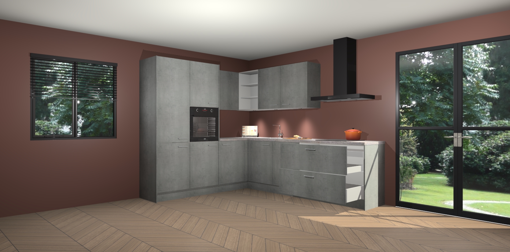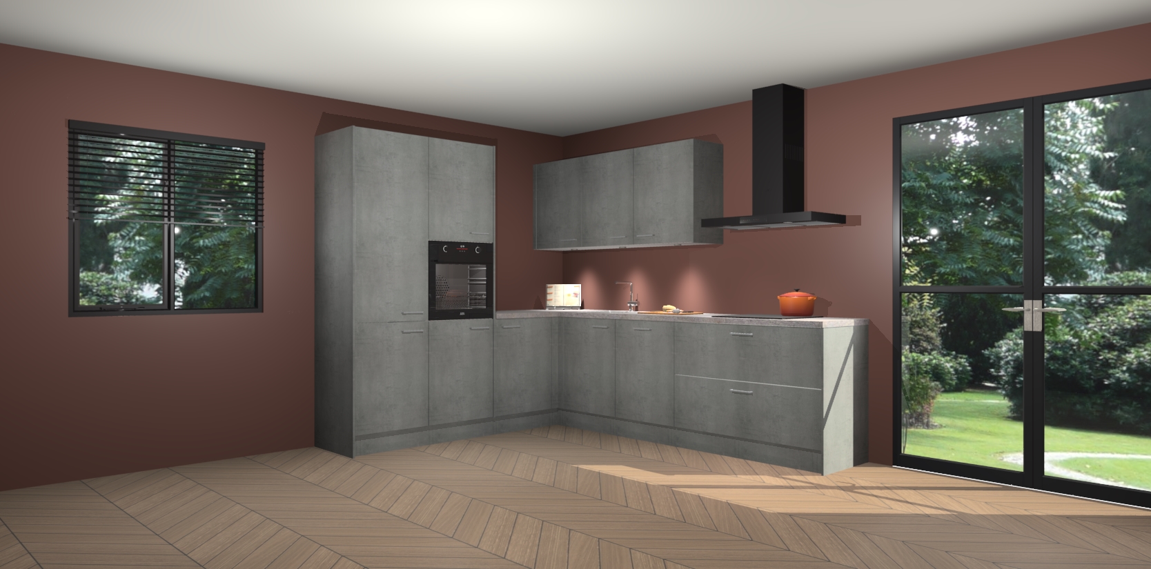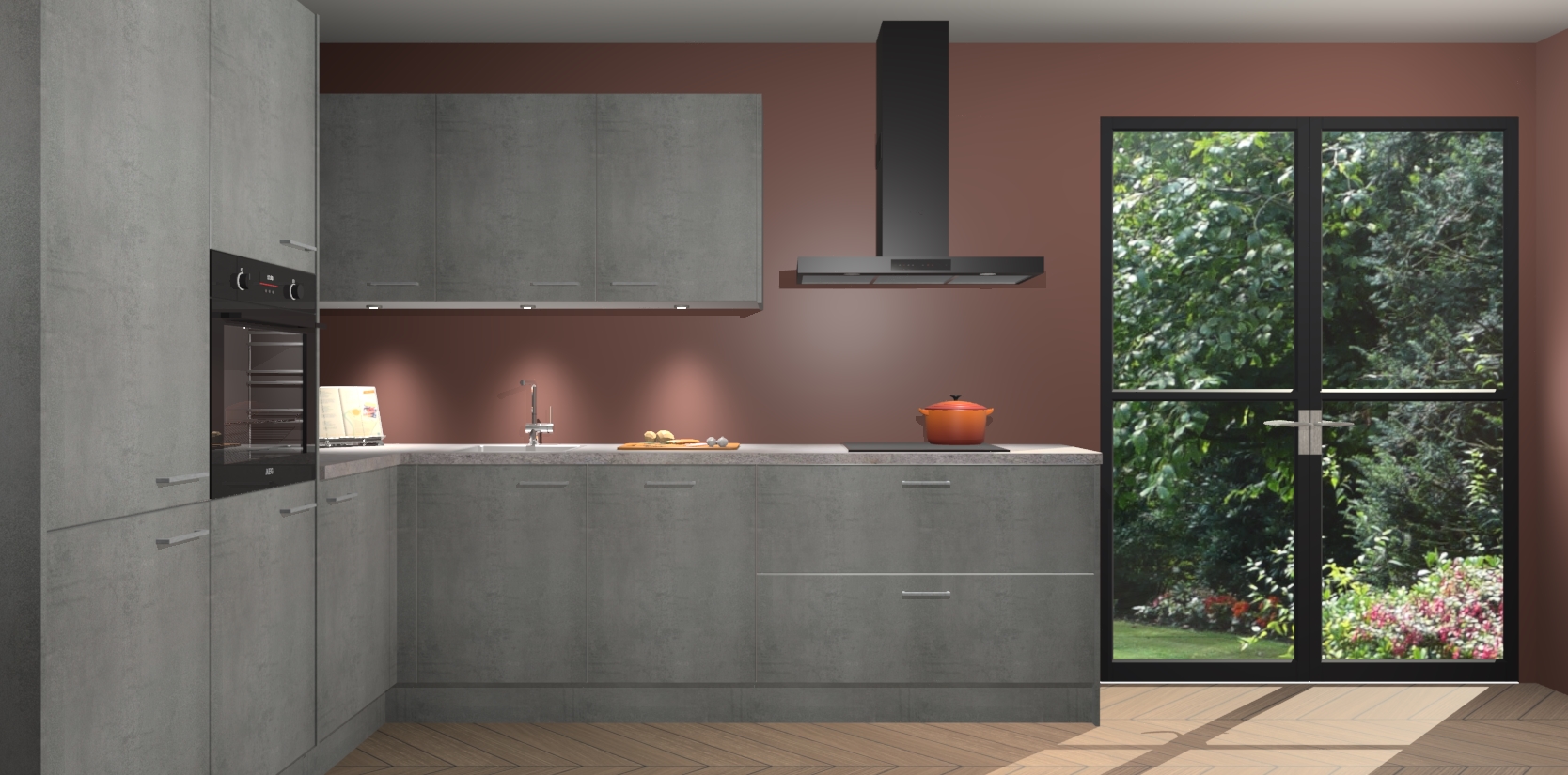 Maak kennis met de beton parelgrijs keuken Parla - de perfecte aanvulling voor uw moderne keuken! Ervaar tijdloos design, elegantie en een chique uitstraling met onze zwarte handgrepen, soft-close deuren en veel opbergruimte. Dit alles wordt aangeboden tegen een vaste lage prijs voor ongeëvenaarde Duitse keukenkwaliteit!