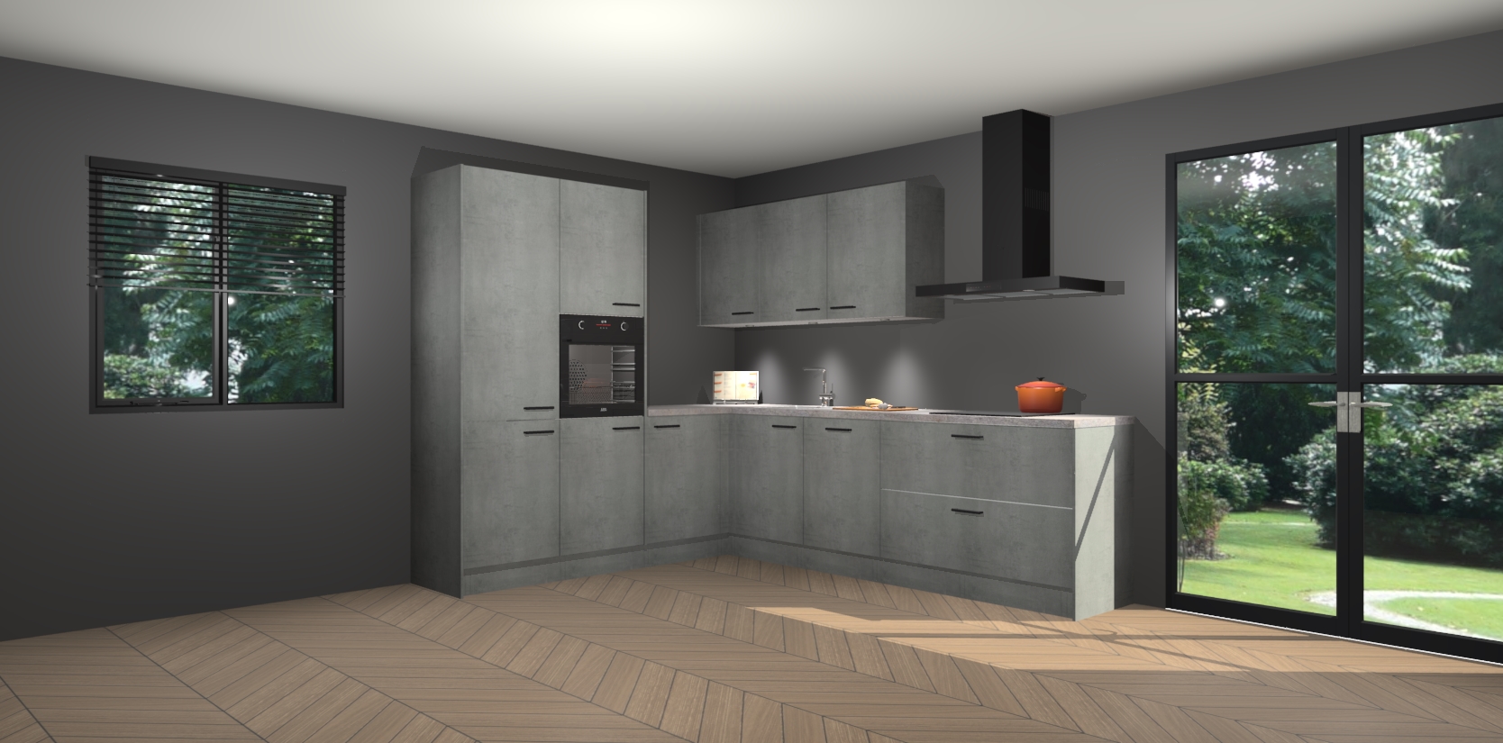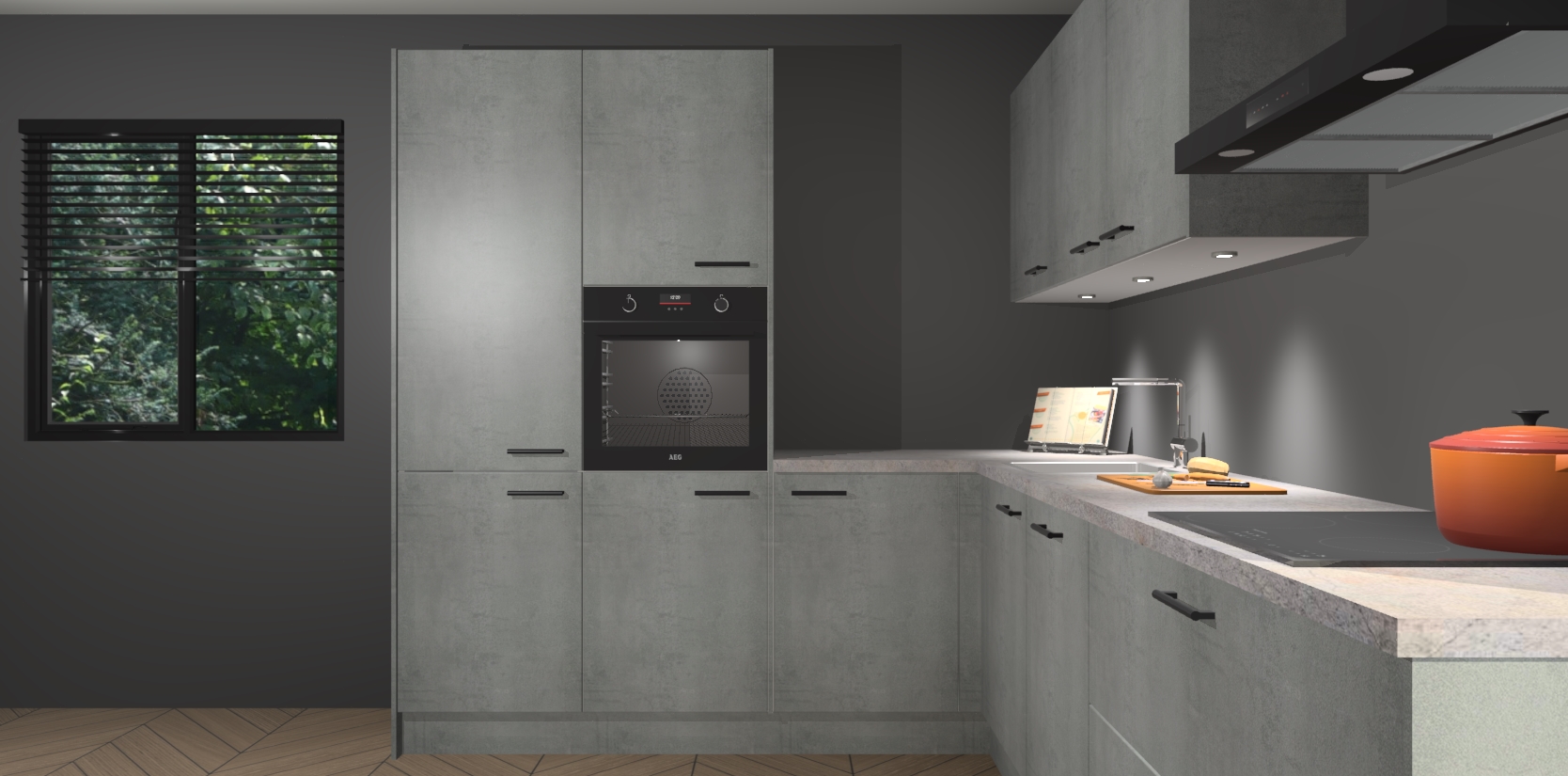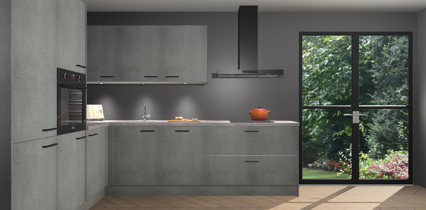 Maak kennis met de beton parelgrijs keuken Parla - de perfecte aanvulling voor uw moderne keuken! Ervaar tijdloos design, elegantie en een chique uitstraling met onze zwarte handgrepen, soft-close deuren en veel opbergruimte. Dit alles wordt aangeboden tegen een vaste lage prijs voor ongeëvenaarde Duitse keukenkwaliteit!