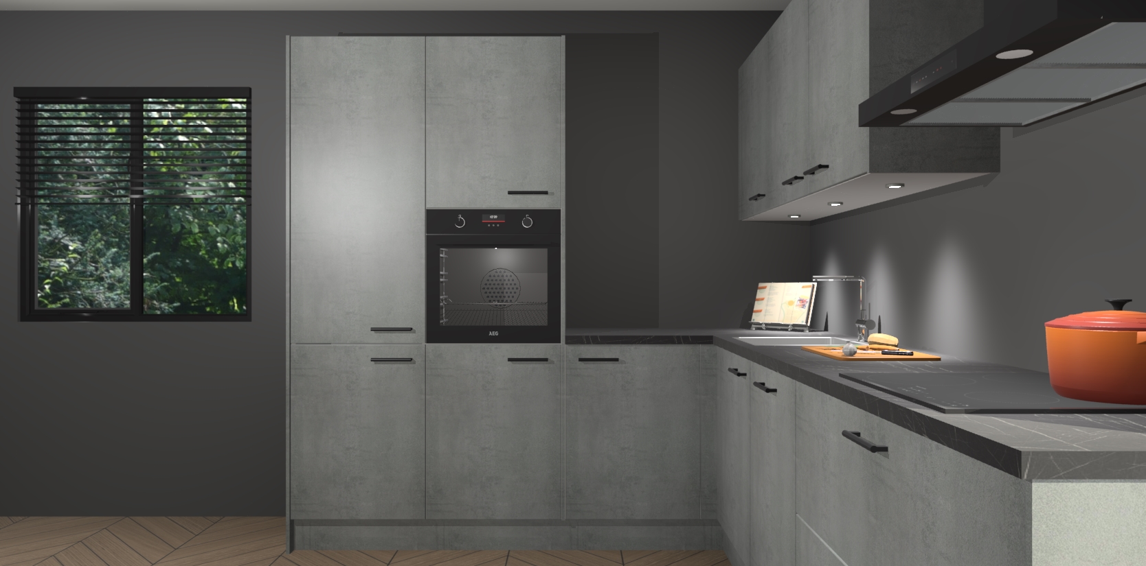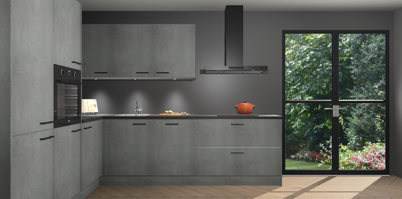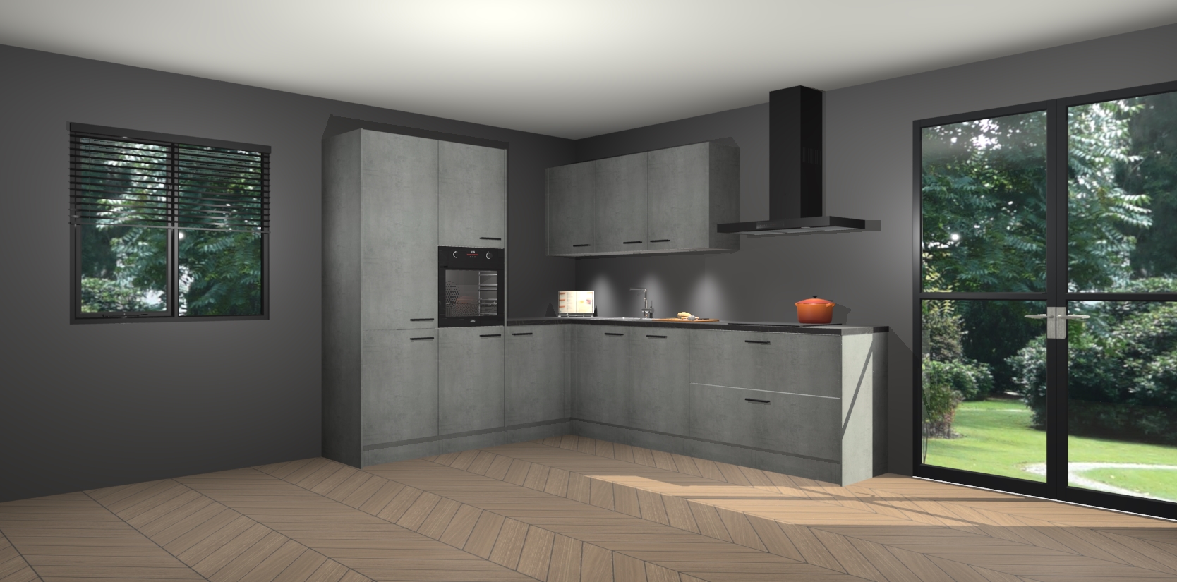 Maak kennis met de beton parelgrijs keuken Parla - de perfecte aanvulling voor uw moderne keuken! Ervaar tijdloos design, elegantie en een chique uitstraling met onze zwarte handgrepen, soft-close deuren en veel opbergruimte. Dit alles wordt aangeboden tegen een vaste lage prijs voor ongeëvenaarde Duitse keukenkwaliteit!