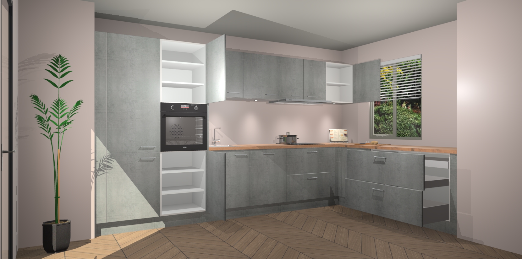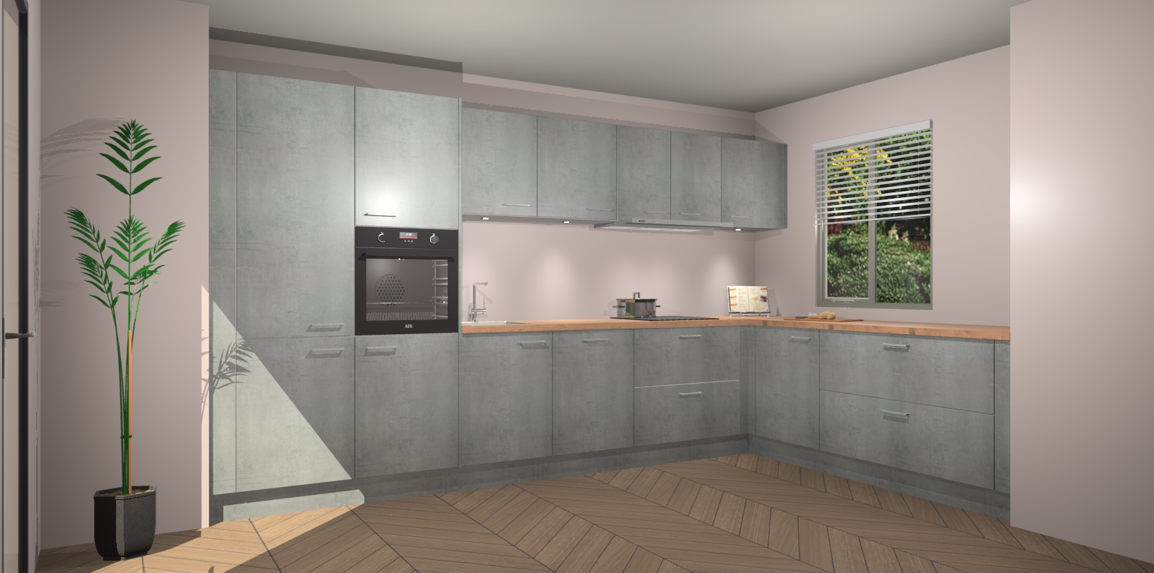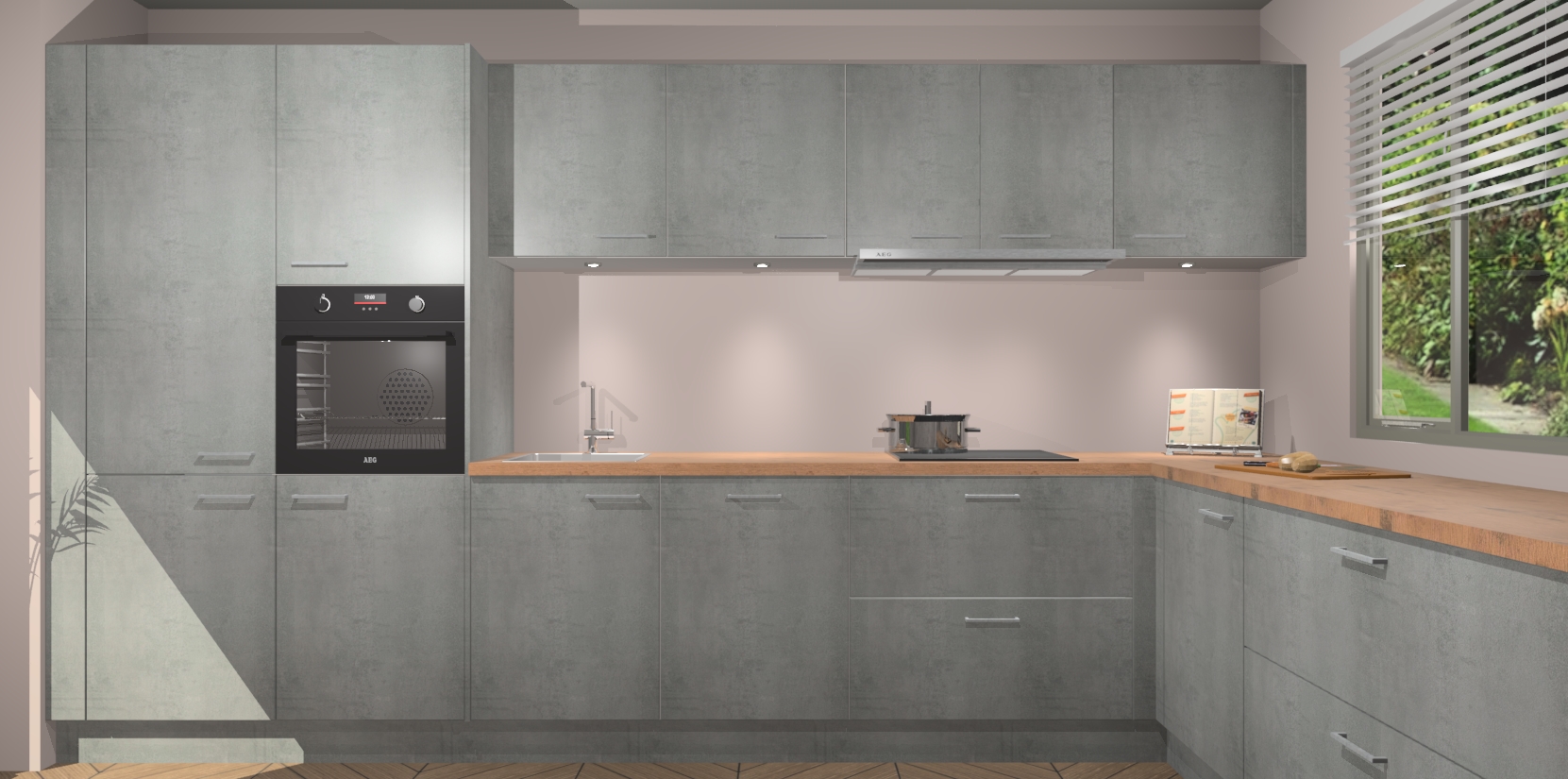 Verwelkom de natuurlijke warmte van de Beton Parelgrijs keuken Petten in uw huis. Deze prachtige hoekkeuken met zijn moderne design en warme houten look geeft u meer dan genoeg opbergruimte om uw comfortabel te voelen in uw keuken. Geniet van soft-close deuren die al uw gasten het gevoel zullen geven dat ze zich in een luxueuze ruimte bevinden.