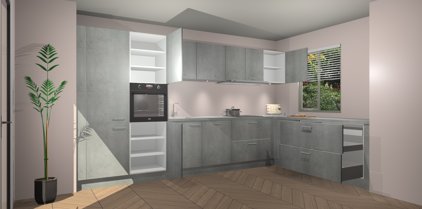 Verwelkom de natuurlijke warmte van de Beton Parelgrijs keuken Petten in uw huis. Deze prachtige hoekkeuken met zijn moderne design en warme houten look geeft u meer dan genoeg opbergruimte om uw comfortabel te voelen in uw keuken. Geniet van soft-close deuren die al uw gasten het gevoel zullen geven dat ze zich in een luxueuze ruimte bevinden.