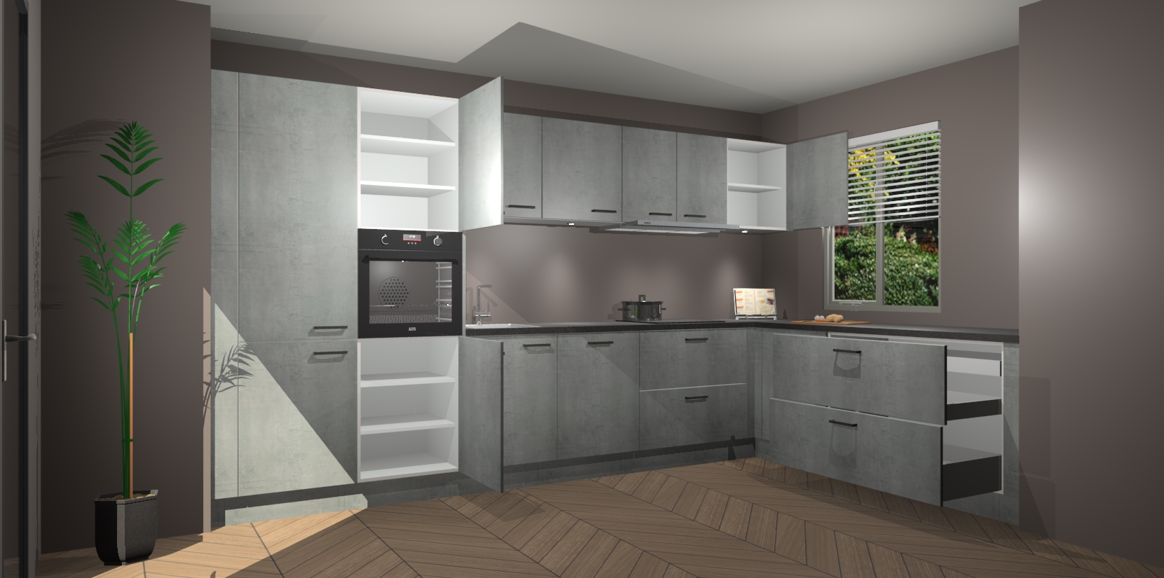 Verwelkom de natuurlijke warmte van de Beton Parelgrijs keuken Petten in uw huis. Deze prachtige hoekkeuken met zijn moderne design en warme houten look geeft u meer dan genoeg opbergruimte om uw comfortabel te voelen in uw keuken. Geniet van soft-close deuren die al uw gasten het gevoel zullen geven dat ze zich in een luxueuze ruimte bevinden.