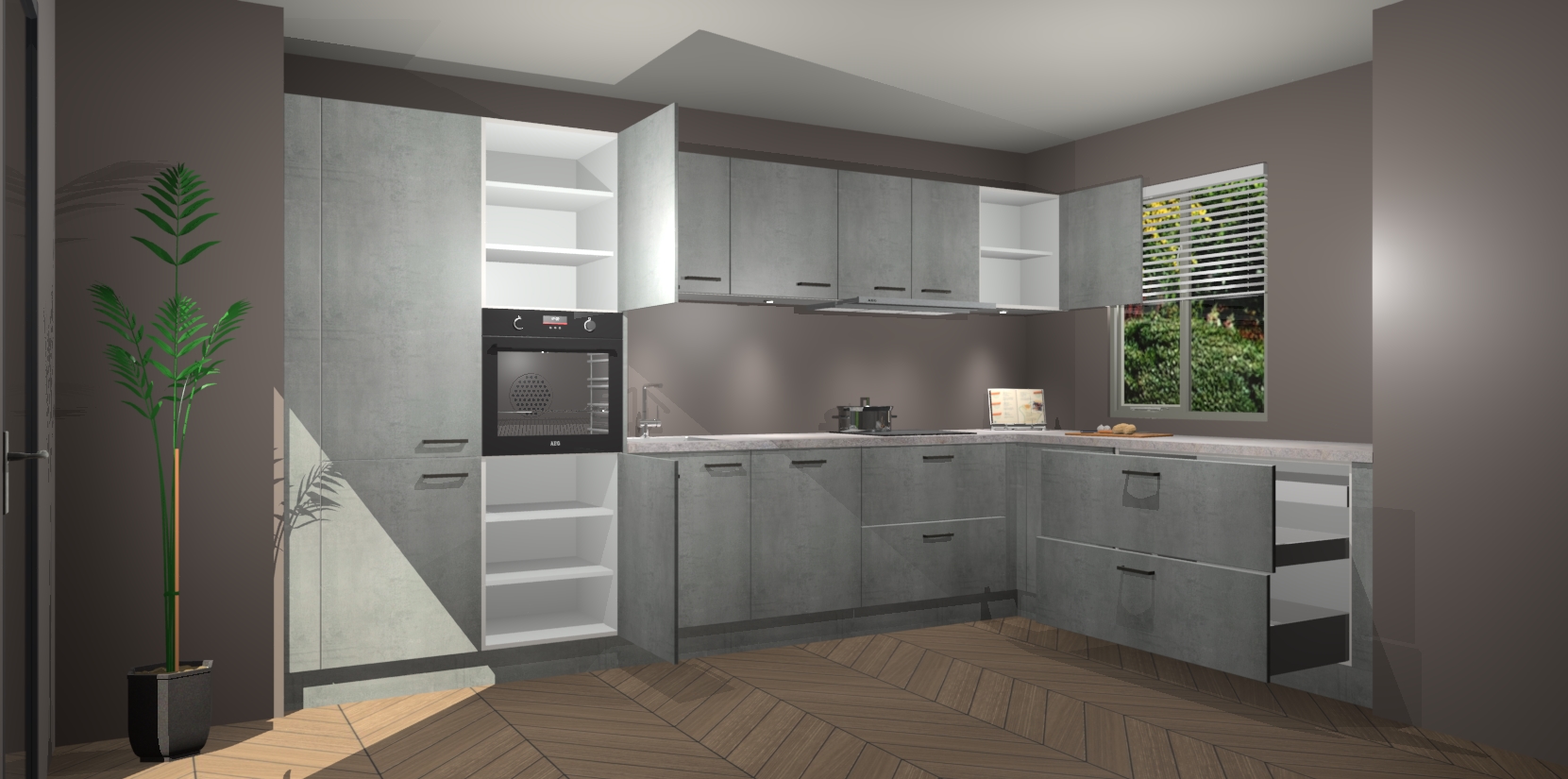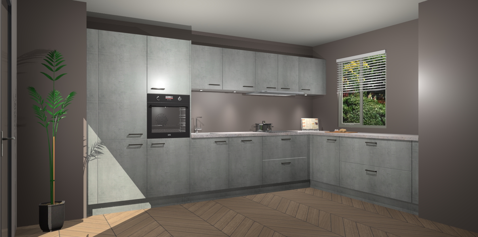 Verwelkom de natuurlijke warmte van de Beton Parelgrijs keuken Petten in uw huis. Deze prachtige hoekkeuken met zijn moderne design en warme houten look geeft u meer dan genoeg opbergruimte om uw comfortabel te voelen in uw keuken. Geniet van soft-close deuren die al uw gasten het gevoel zullen geven dat ze zich in een luxueuze ruimte bevinden.
