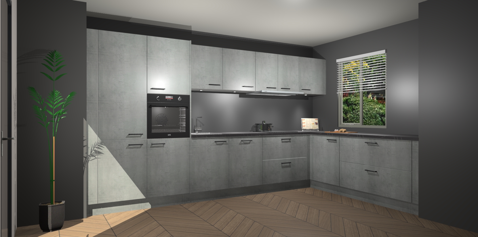 Verwelkom de natuurlijke warmte van de Beton Parelgrijs keuken Petten in uw huis. Deze prachtige hoekkeuken met zijn moderne design en warme houten look geeft u meer dan genoeg opbergruimte om uw comfortabel te voelen in uw keuken. Geniet van soft-close deuren die al uw gasten het gevoel zullen geven dat ze zich in een luxueuze ruimte bevinden.