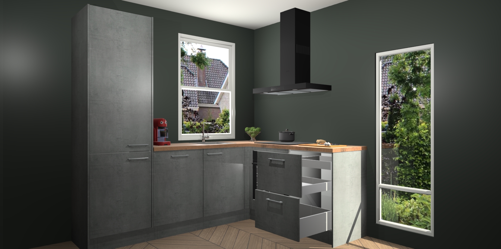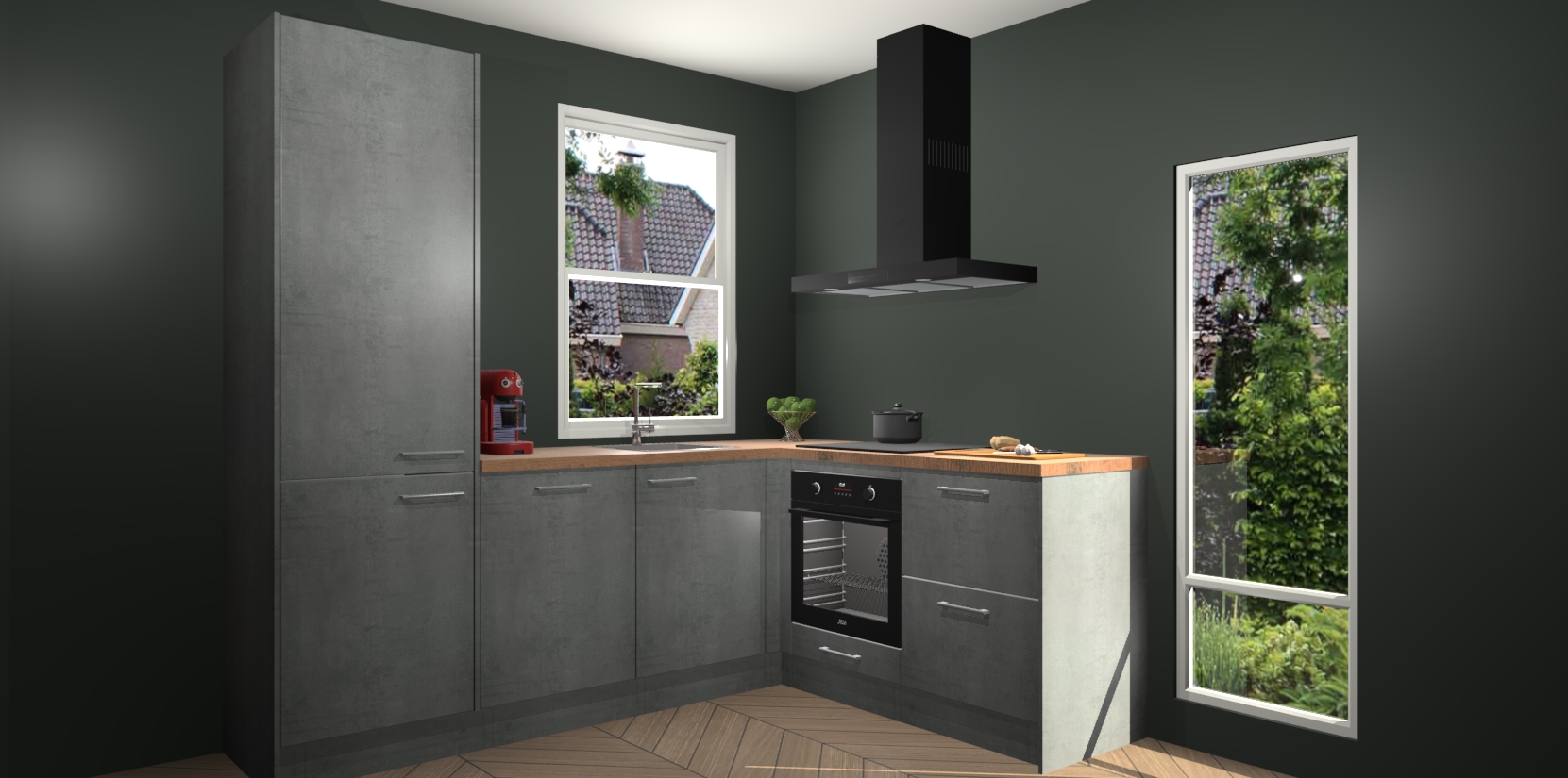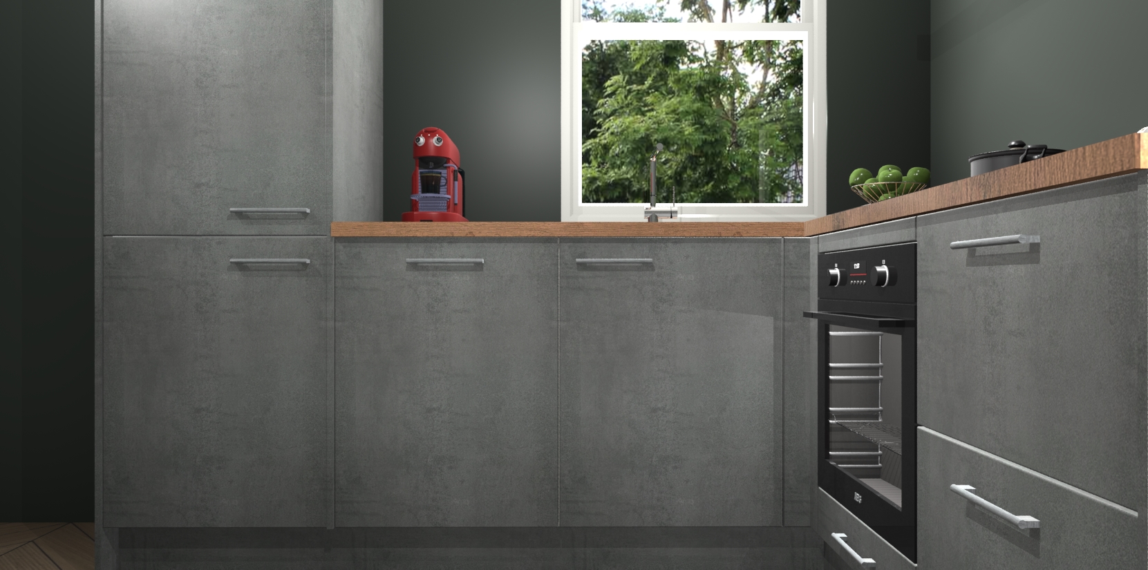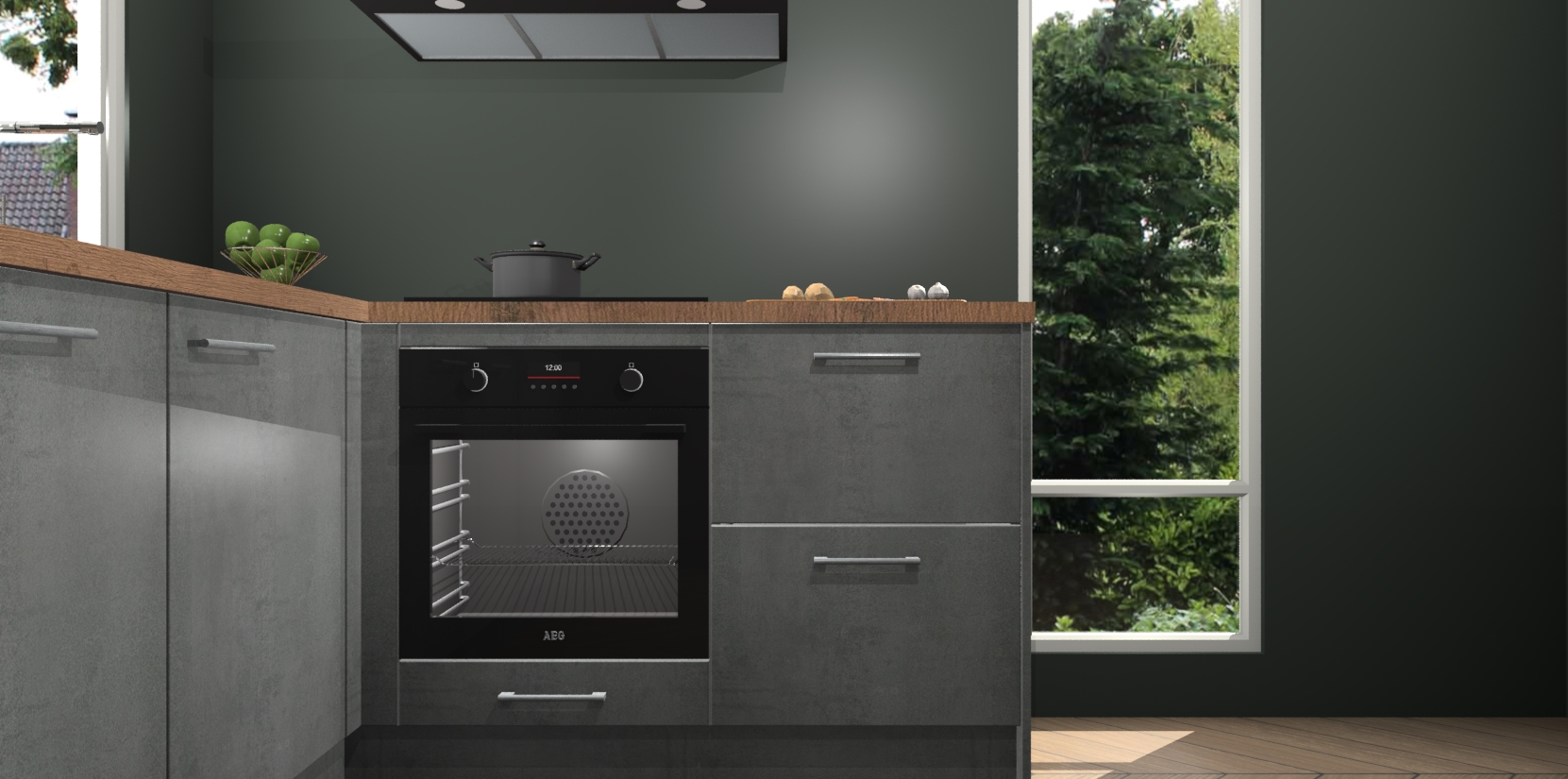 De Beton Parelgrijs keuken Phuket heeft alles wat u maar kunt wensen. Niet alleen zijn er softclose deuren, maar ook 5 ingebouwde apparaten: een oven, inductiekookplaat, afzuigkap, vaatwasser en koelkast - waarbij u later gemakkelijk naar het AEG merk, van inductiekookplaat naar kookplaat met geïntegreerde afzuiging of van oven naar combimagnetron kunt upgraden. Dat alles tegen een vast laag tarief! Bovendien geeft de Beton Parelgrijs keuken Phuket supersnelle levering van 7 weken. Echt iets voor u als u er niet op wilt wachten om het resultaat te zien in eigen keuken!