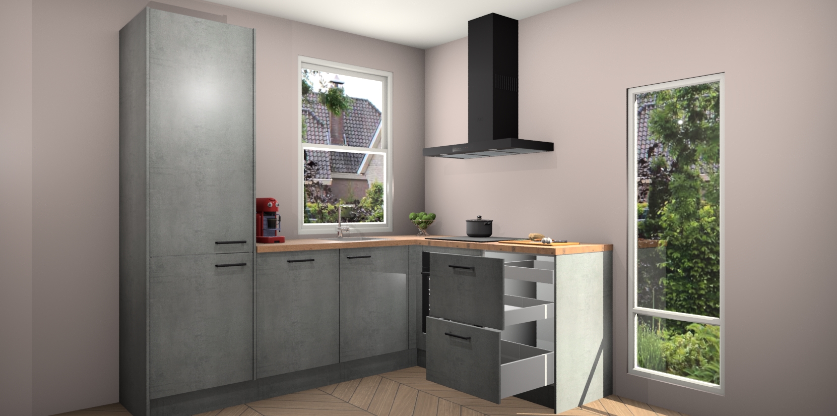 De prachtige Beton Parelgrijs keuken Phuket is de perfecte keuze als u op zoek bent naar een moderne hoekkeuken met alle luxe en comfort die u kunt verwachten! De uitstraling in het houtlook-design draagt bij aan de warme sfeer die u nu al voelt wanneer u er naar kijkt. Heeft u genoeg van ouderwetse keukens? Probeer dan direct deze moderne, mooie hoekkeukens en laat iedereen verbluft achter!