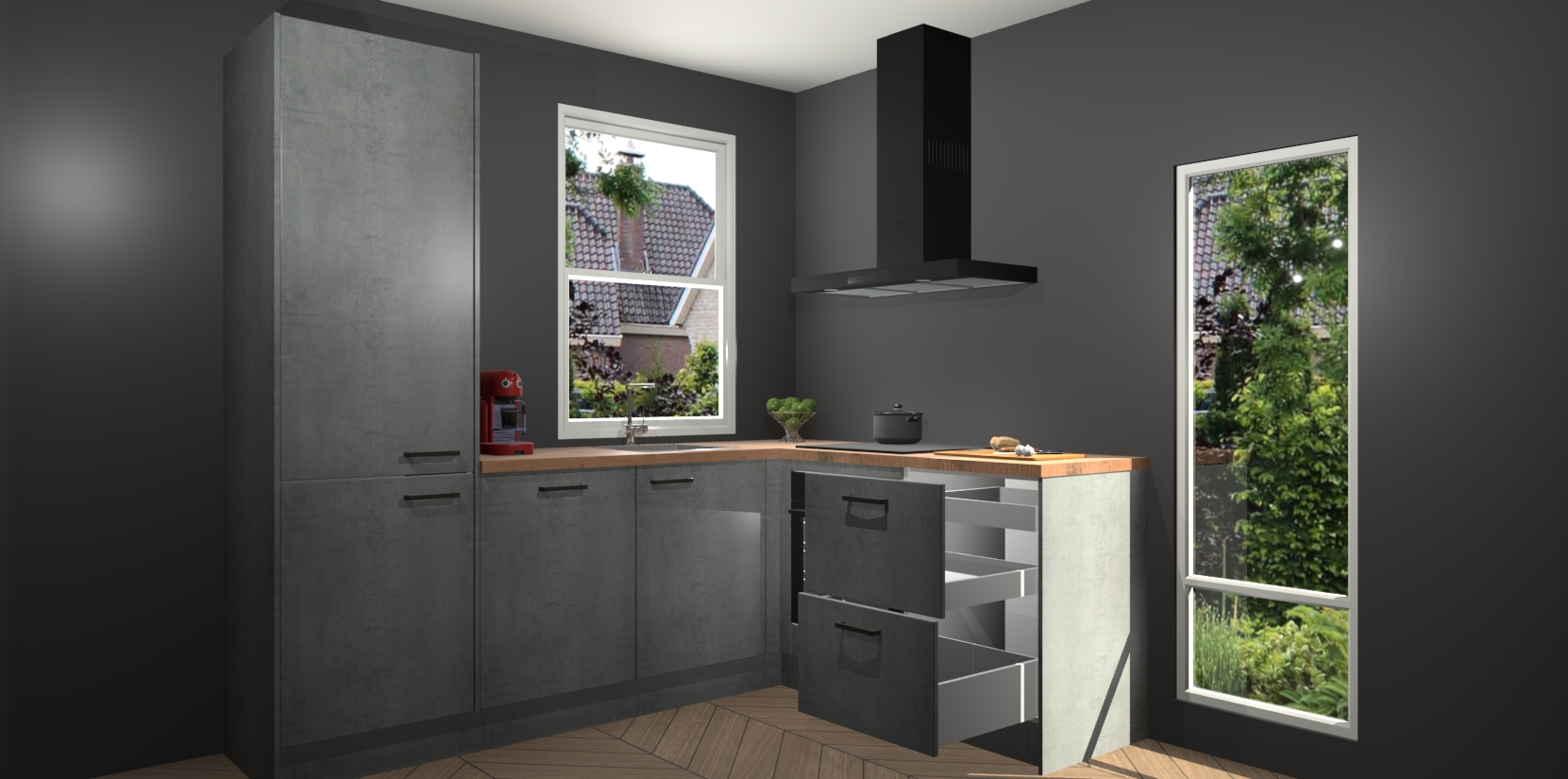 De prachtige Beton Parelgrijs keuken Phuket is de perfecte keuze als u op zoek bent naar een moderne hoekkeuken met alle luxe en comfort die u kunt verwachten! De uitstraling in het houtlook-design draagt bij aan de warme sfeer die u nu al voelt wanneer u er naar kijkt. Heeft u genoeg van ouderwetse keukens? Probeer dan direct deze moderne, mooie hoekkeukens en laat iedereen verbluft achter!