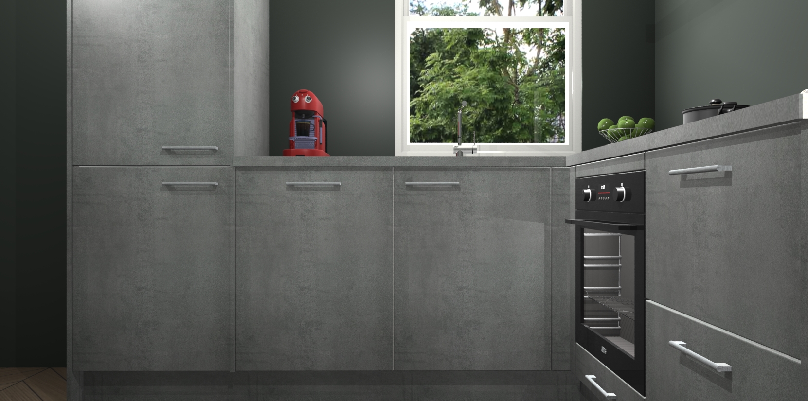 De Beton Parelgrijs keuken Phuket heeft alles wat u maar kunt wensen. Niet alleen zijn er softclose deuren, maar ook 5 ingebouwde apparaten: een oven, inductiekookplaat, afzuigkap, vaatwasser en koelkast - waarbij u later gemakkelijk naar het AEG merk, van inductiekookplaat naar kookplaat met geïntegreerde afzuiging of van oven naar combimagnetron kunt upgraden. Dat alles tegen een vast laag tarief! Bovendien geeft de Beton Parelgrijs keuken Phuket supersnelle levering van 7 weken. Echt iets voor u als u er niet op wilt wachten om het resultaat te zien in eigen keuken!