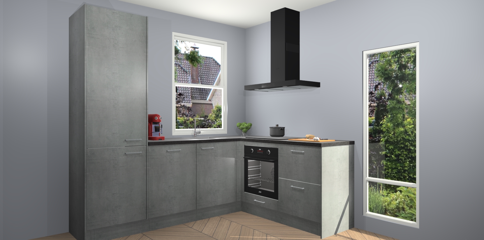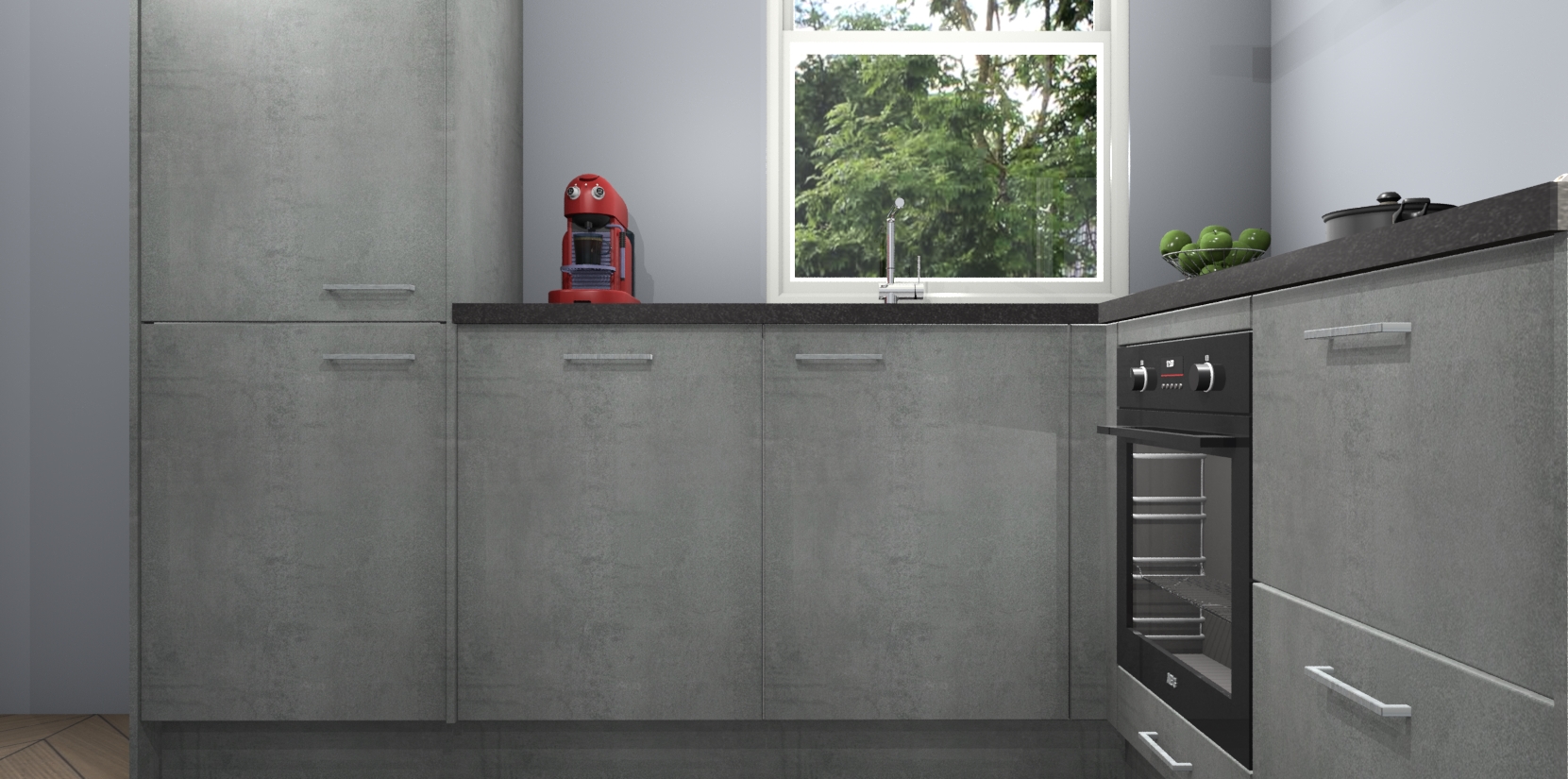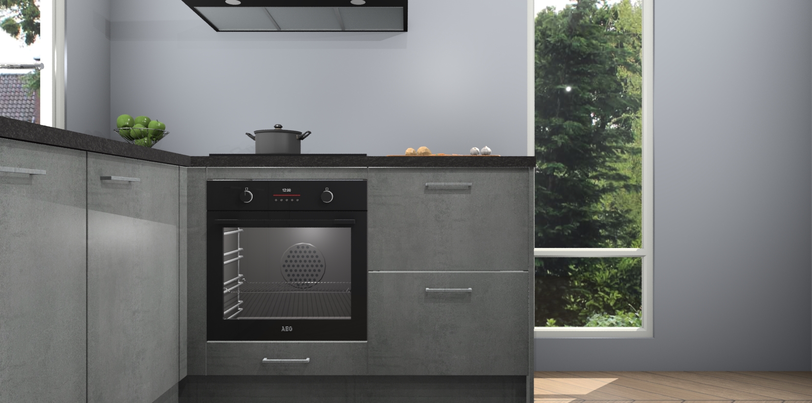 De Beton Parelgrijs keuken Phuket heeft alles wat u maar kunt wensen. Niet alleen zijn er softclose deuren, maar ook 5 ingebouwde apparaten: een oven, inductiekookplaat, afzuigkap, vaatwasser en koelkast - waarbij u later gemakkelijk naar het AEG merk, van inductiekookplaat naar kookplaat met geïntegreerde afzuiging of van oven naar combimagnetron kunt upgraden. Dat alles tegen een vast laag tarief! Bovendien geeft de Beton Parelgrijs keuken Phuket supersnelle levering van 7 weken. Echt iets voor u als u er niet op wilt wachten om het resultaat te zien in eigen keuken!
