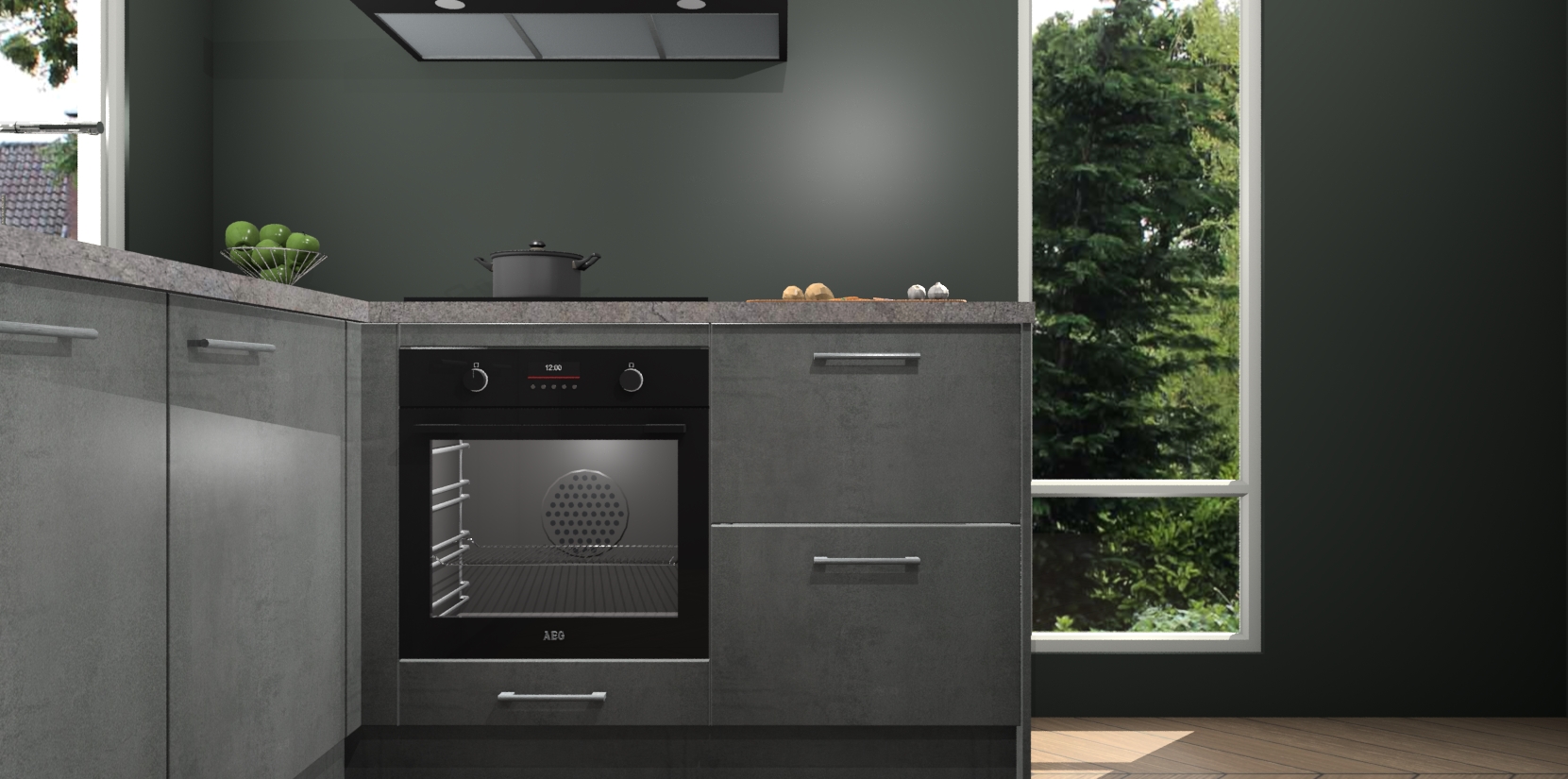 De Beton Parelgrijs keuken Phuket heeft alles wat u maar kunt wensen. Niet alleen zijn er softclose deuren, maar ook 5 ingebouwde apparaten: een oven, inductiekookplaat, afzuigkap, vaatwasser en koelkast - waarbij u later gemakkelijk naar het AEG merk, van inductiekookplaat naar kookplaat met geïntegreerde afzuiging of van oven naar combimagnetron kunt upgraden. Dat alles tegen een vast laag tarief! Bovendien geeft de Beton Parelgrijs keuken Phuket supersnelle levering van 7 weken. Echt iets voor u als u er niet op wilt wachten om het resultaat te zien in eigen keuken!