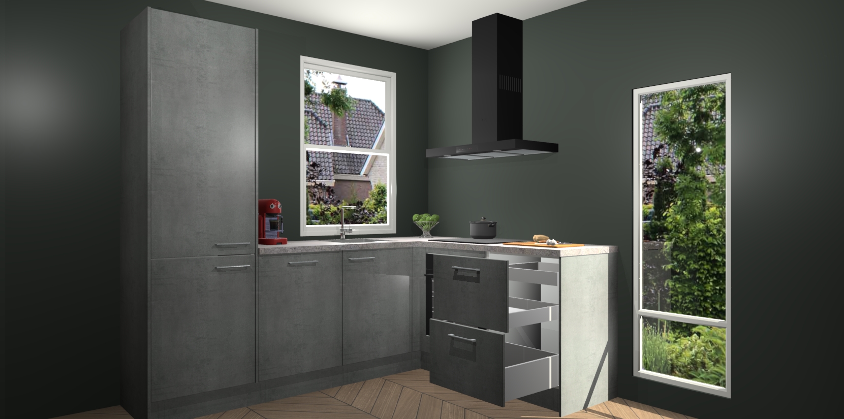 De prachtige Beton Parelgrijs keuken Phuket is de perfecte keuze als u op zoek bent naar een moderne hoekkeuken met alle luxe en comfort die u kunt verwachten! De uitstraling in het houtlook-design draagt bij aan de warme sfeer die u nu al voelt wanneer u er naar kijkt. Heeft u genoeg van ouderwetse keukens? Probeer dan direct deze moderne, mooie hoekkeukens en laat iedereen verbluft achter!