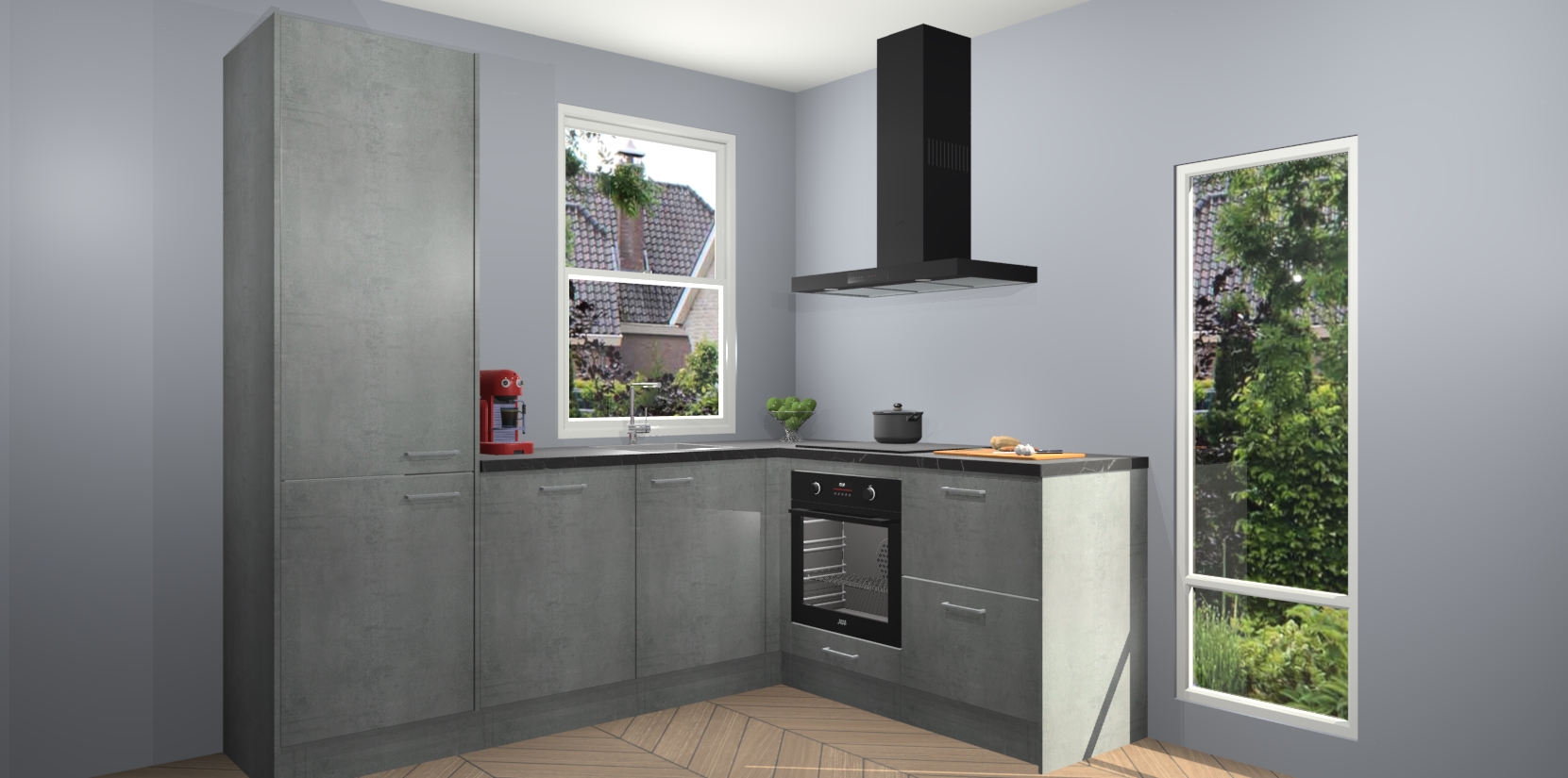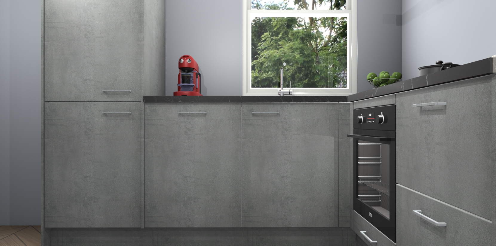 De Beton Parelgrijs keuken Phuket heeft alles wat u maar kunt wensen. Niet alleen zijn er softclose deuren, maar ook 5 ingebouwde apparaten: een oven, inductiekookplaat, afzuigkap, vaatwasser en koelkast - waarbij u later gemakkelijk naar het AEG merk, van inductiekookplaat naar kookplaat met geïntegreerde afzuiging of van oven naar combimagnetron kunt upgraden. Dat alles tegen een vast laag tarief! Bovendien geeft de Beton Parelgrijs keuken Phuket supersnelle levering van 7 weken. Echt iets voor u als u er niet op wilt wachten om het resultaat te zien in eigen keuken!