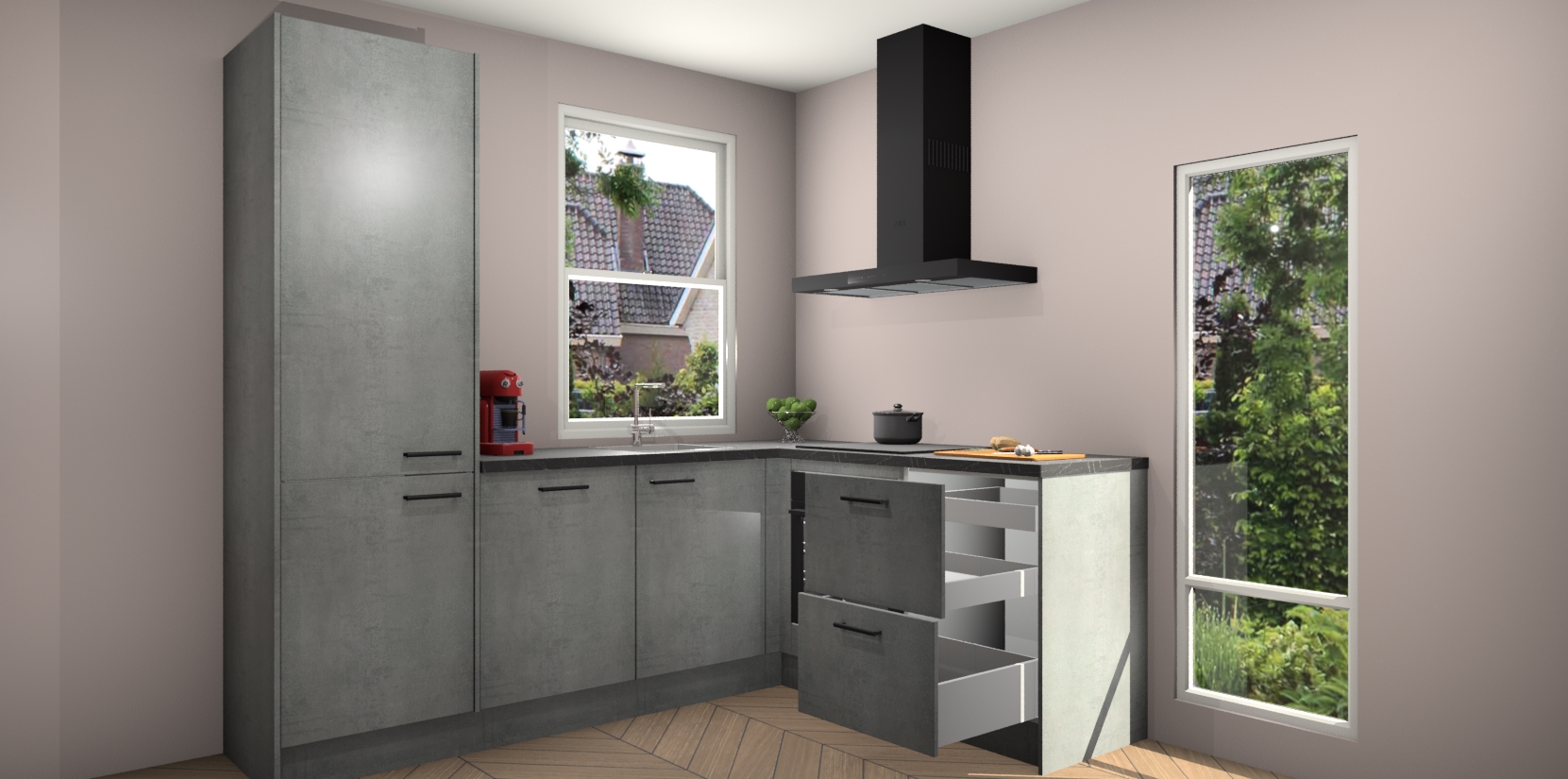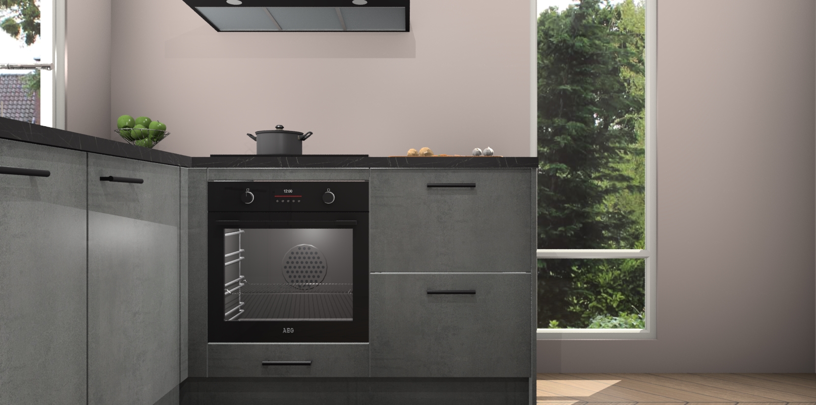De Beton Parelgrijs keuken Phuket heeft alles wat u maar kunt wensen. Niet alleen zijn er softclose deuren, maar ook 5 ingebouwde apparaten: een oven, inductiekookplaat, afzuigkap, vaatwasser en koelkast - waarbij u later gemakkelijk naar het AEG merk, van inductiekookplaat naar kookplaat met geïntegreerde afzuiging of van oven naar combimagnetron kunt upgraden. Dat alles tegen een vast laag tarief! Bovendien geeft de Beton Parelgrijs keuken Phuket supersnelle levering van 7 weken. Echt iets voor u als u er niet op wilt wachten om het resultaat te zien in eigen keuken!