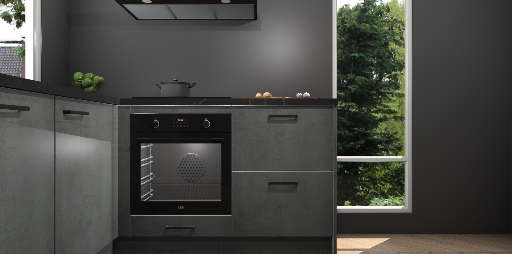De Beton Parelgrijs keuken Phuket heeft alles wat u maar kunt wensen. Niet alleen zijn er softclose deuren, maar ook 5 ingebouwde apparaten: een oven, inductiekookplaat, afzuigkap, vaatwasser en koelkast - waarbij u later gemakkelijk naar het AEG merk, van inductiekookplaat naar kookplaat met geïntegreerde afzuiging of van oven naar combimagnetron kunt upgraden. Dat alles tegen een vast laag tarief! Bovendien geeft de Beton Parelgrijs keuken Phuket supersnelle levering van 7 weken. Echt iets voor u als u er niet op wilt wachten om het resultaat te zien in eigen keuken!