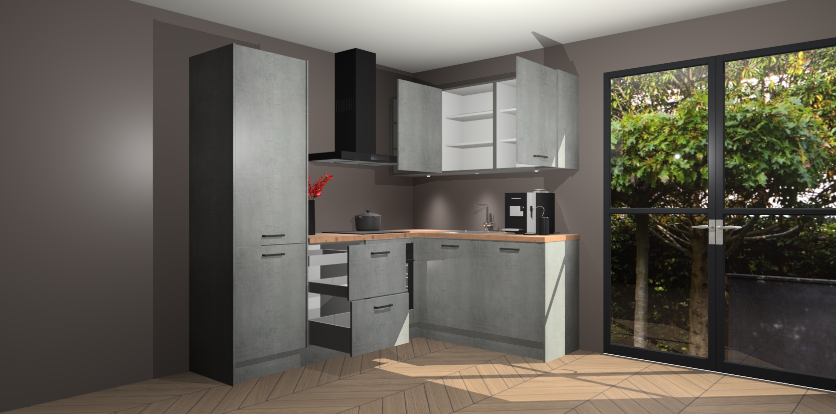 Wauw, dit is de Beton Parelgrijs keuken Pilsen! U kunt gerust zeggen dat u elegantie combineert met functionaliteit met deze keuken. Met een modern en chique ontwerp is de keuken precies wat u nodig heeft om uw ruimte te verfraaien. De binnenzijde van de kasten is in dezelfde donkere kleur als de buitenzijde voor een uniforme look, compleet met softclose-kasten die stil sluiten.