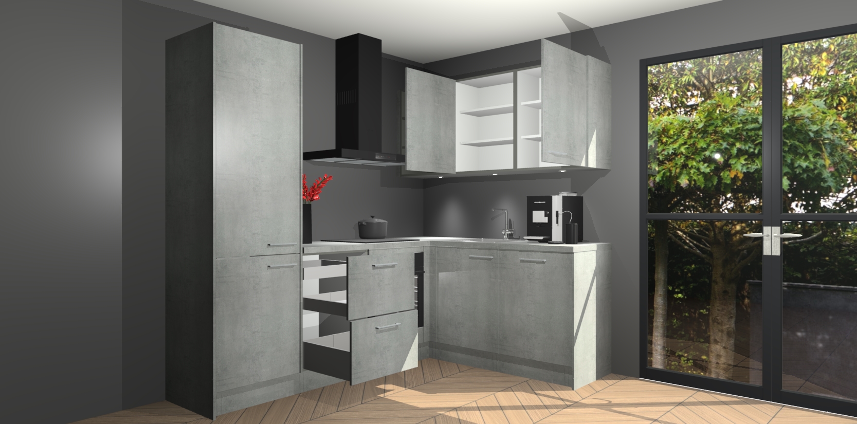 Wauw, dit is de Beton Parelgrijs keuken Pilsen! U kunt gerust zeggen dat u elegantie combineert met functionaliteit met deze keuken. Met een modern en chique ontwerp is de keuken precies wat u nodig heeft om uw ruimte te verfraaien. De binnenzijde van de kasten is in dezelfde donkere kleur als de buitenzijde voor een uniforme look, compleet met softclose-kasten die stil sluiten.