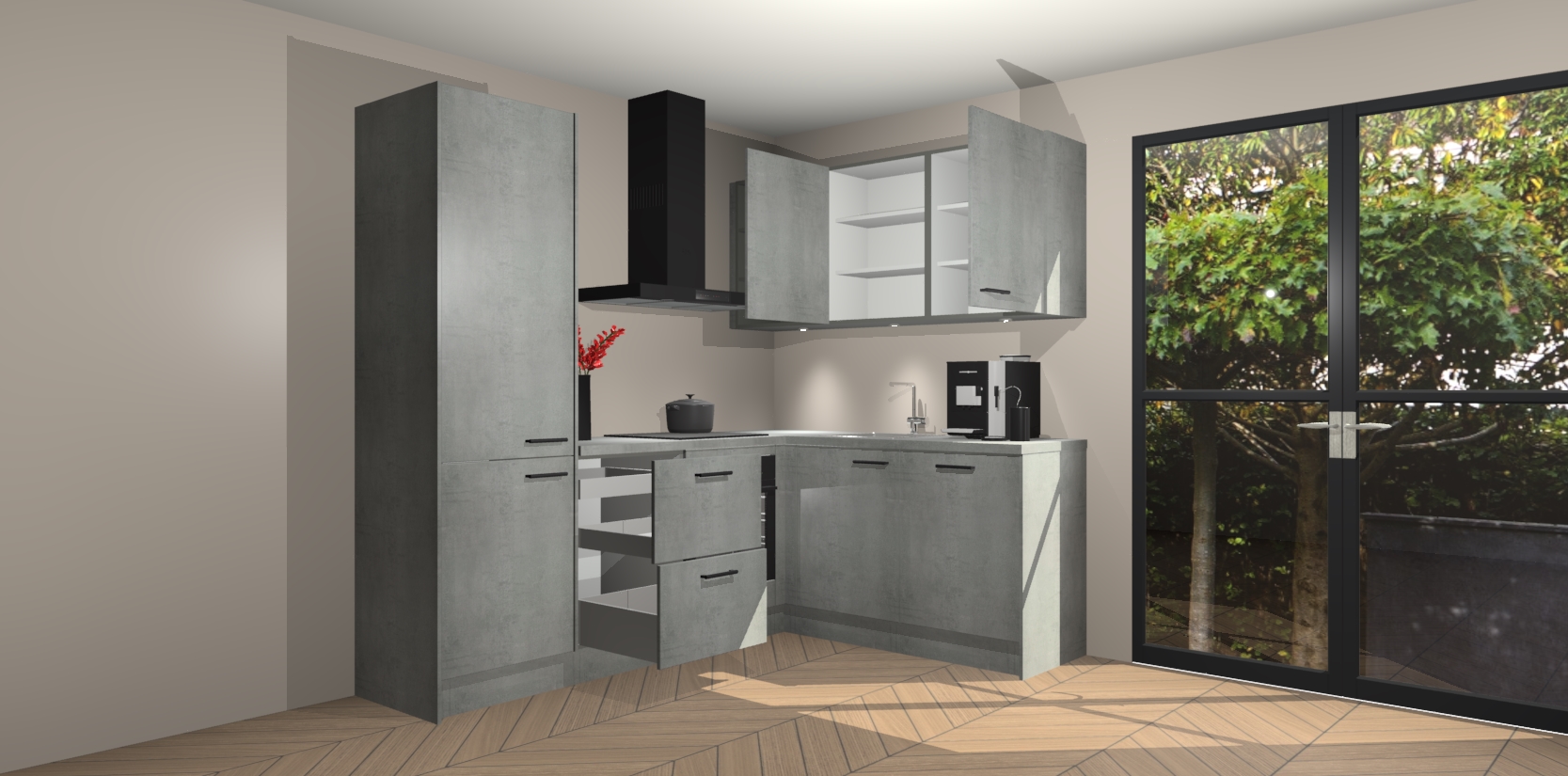 Wauw, dit is de Beton Parelgrijs keuken Pilsen! U kunt gerust zeggen dat u elegantie combineert met functionaliteit met deze keuken. Met een modern en chique ontwerp is de keuken precies wat u nodig heeft om uw ruimte te verfraaien. De binnenzijde van de kasten is in dezelfde donkere kleur als de buitenzijde voor een uniforme look, compleet met softclose-kasten die stil sluiten.